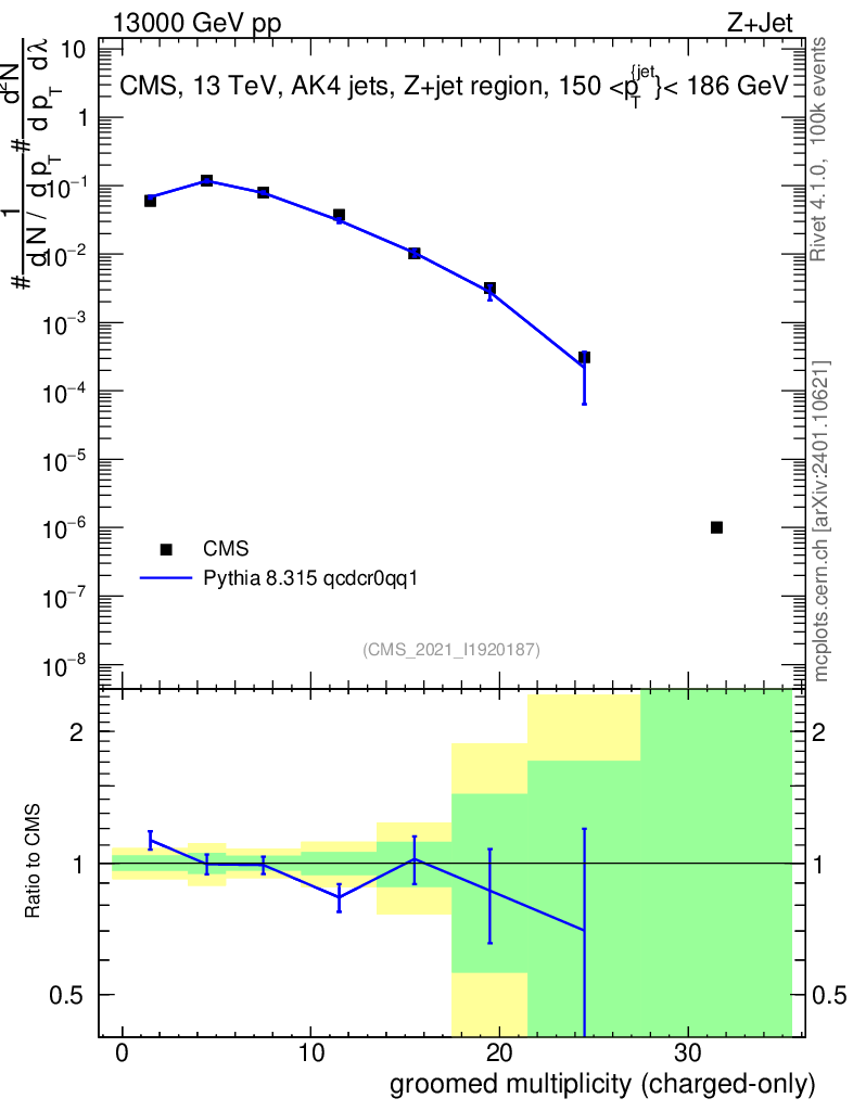 Lines: data, pythia8 8.315 qcdcr0qq1 |
