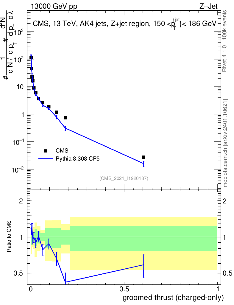Lines: data, pythia8 8.308 CP5 |