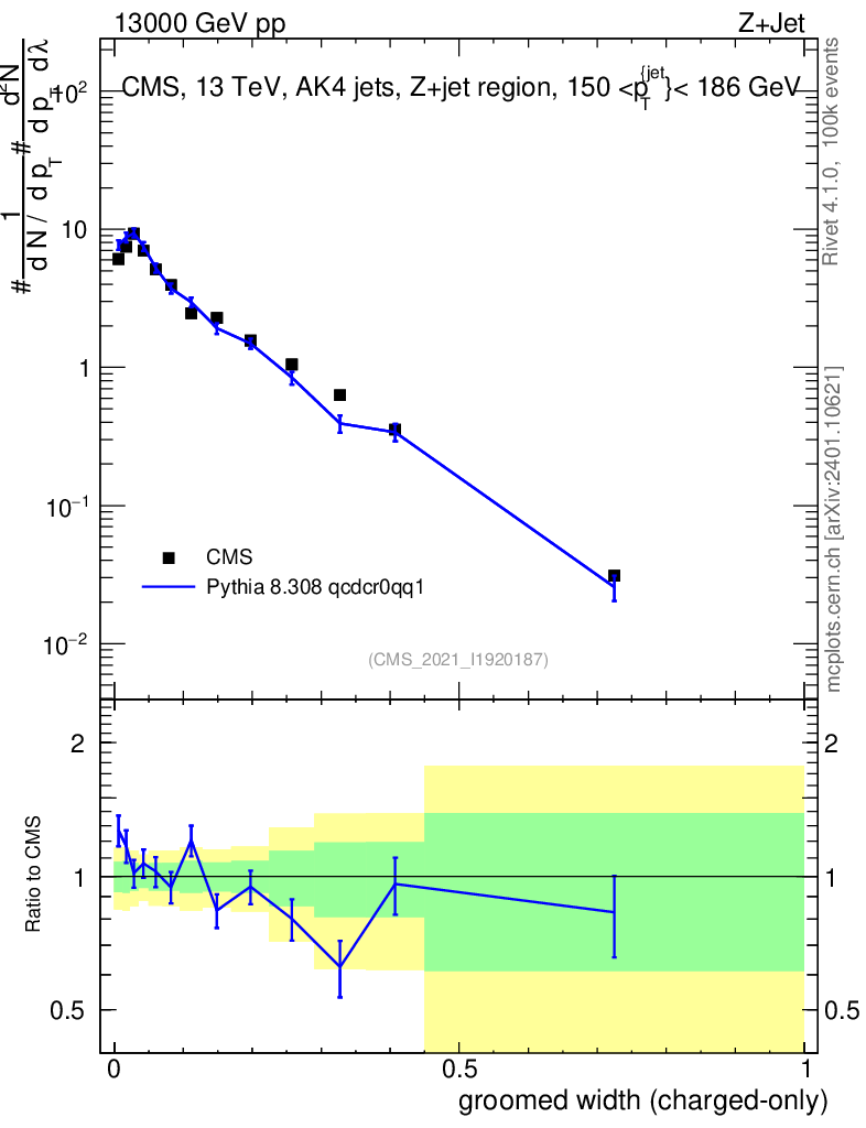 Lines: data, pythia8 8.308 qcdcr0qq1 |