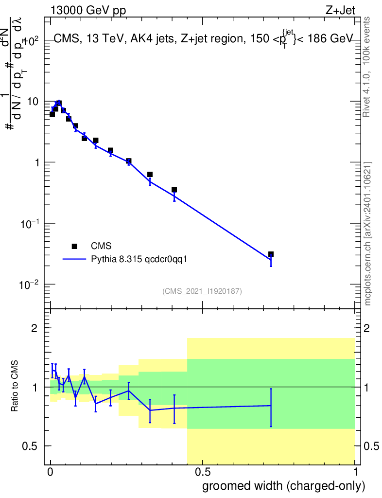 Lines: data, pythia8 8.315 qcdcr0qq1 |