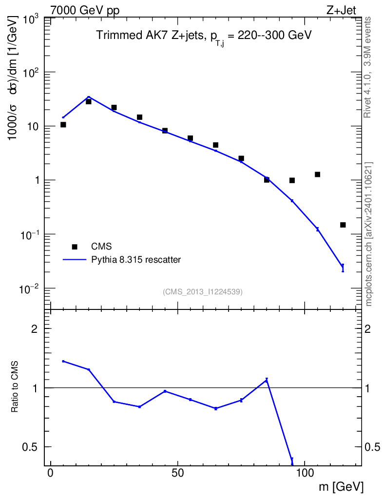 Lines: data, pythia8 8.315 rescatter |