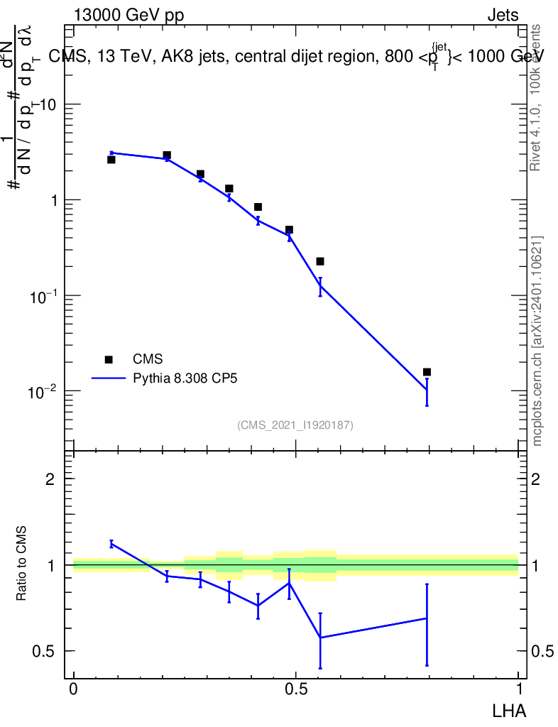 Lines: data, pythia8 8.308 CP5 |