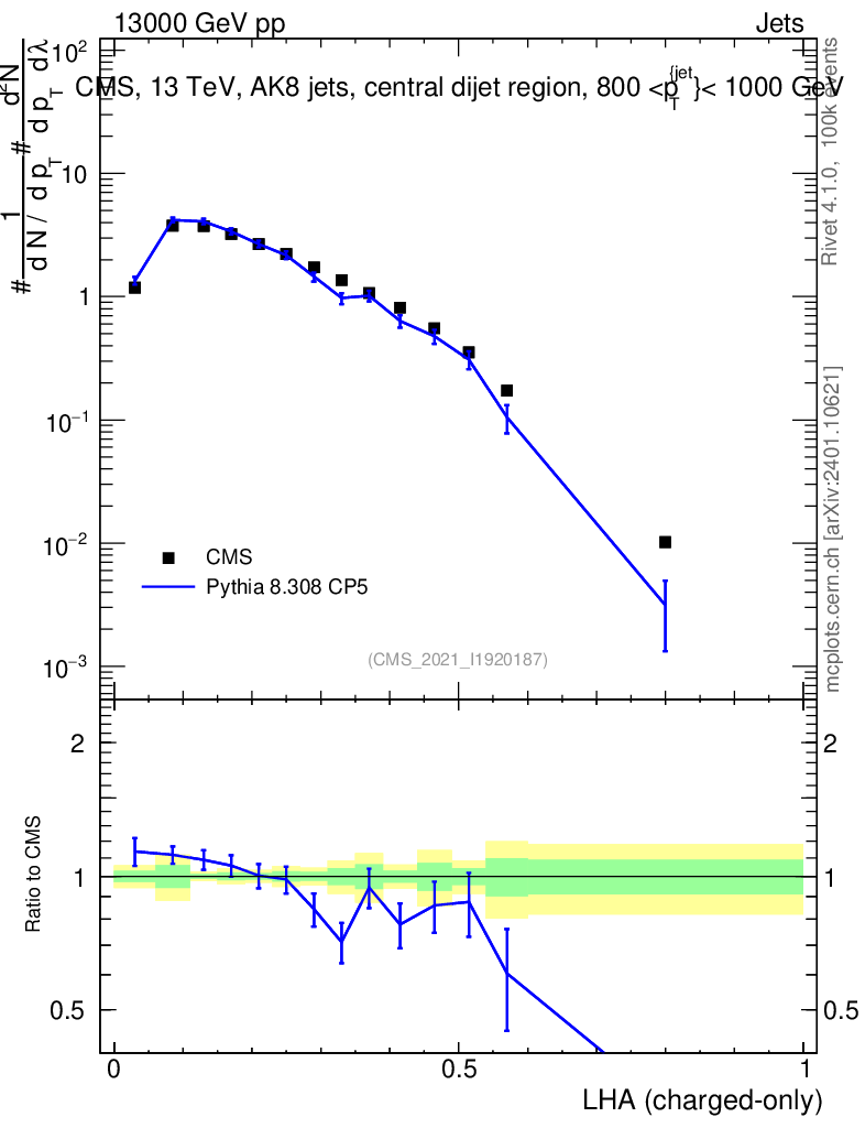 Lines: data, pythia8 8.308 CP5 |