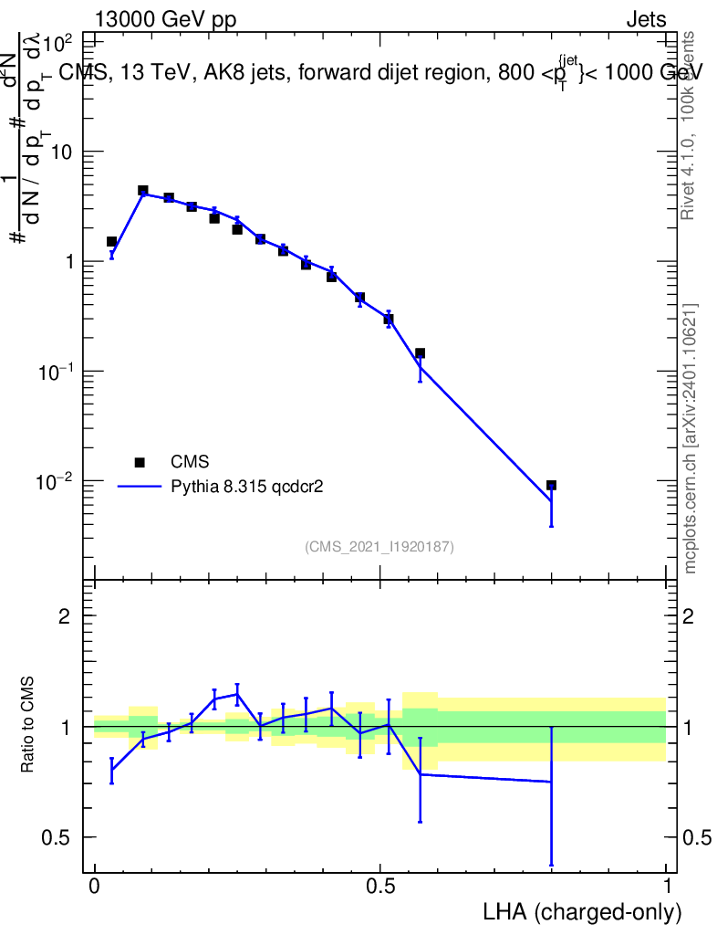 Lines: data, pythia8 8.315 qcdcr2 |