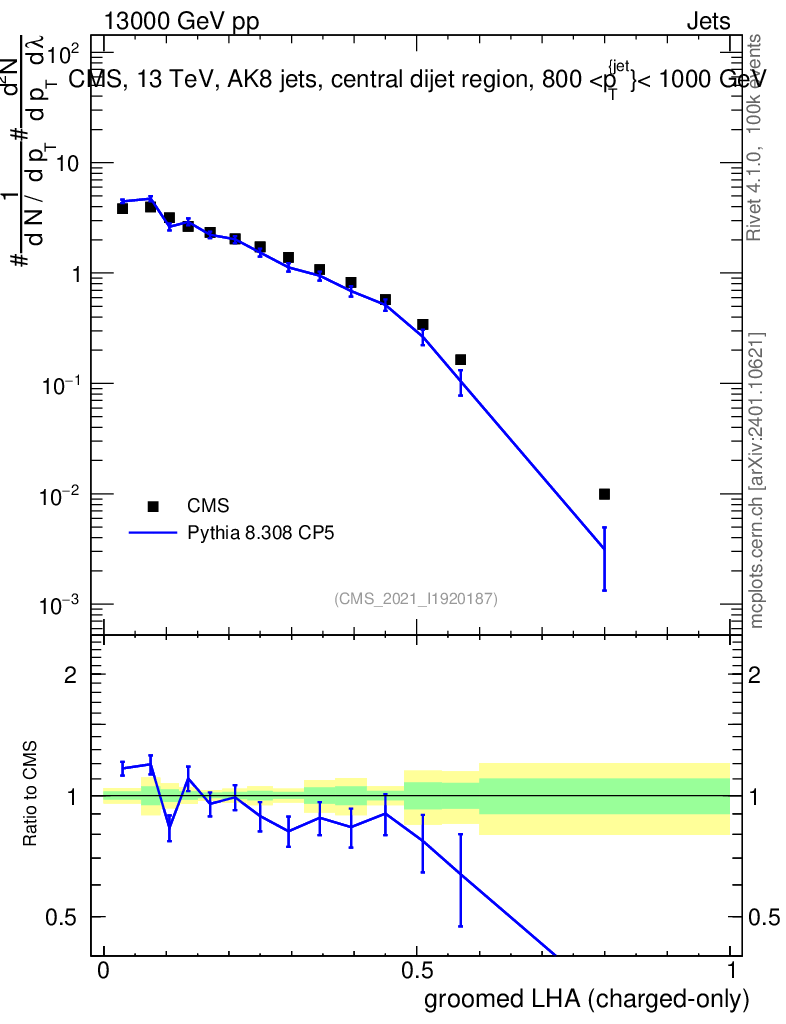 Lines: data, pythia8 8.308 CP5 |