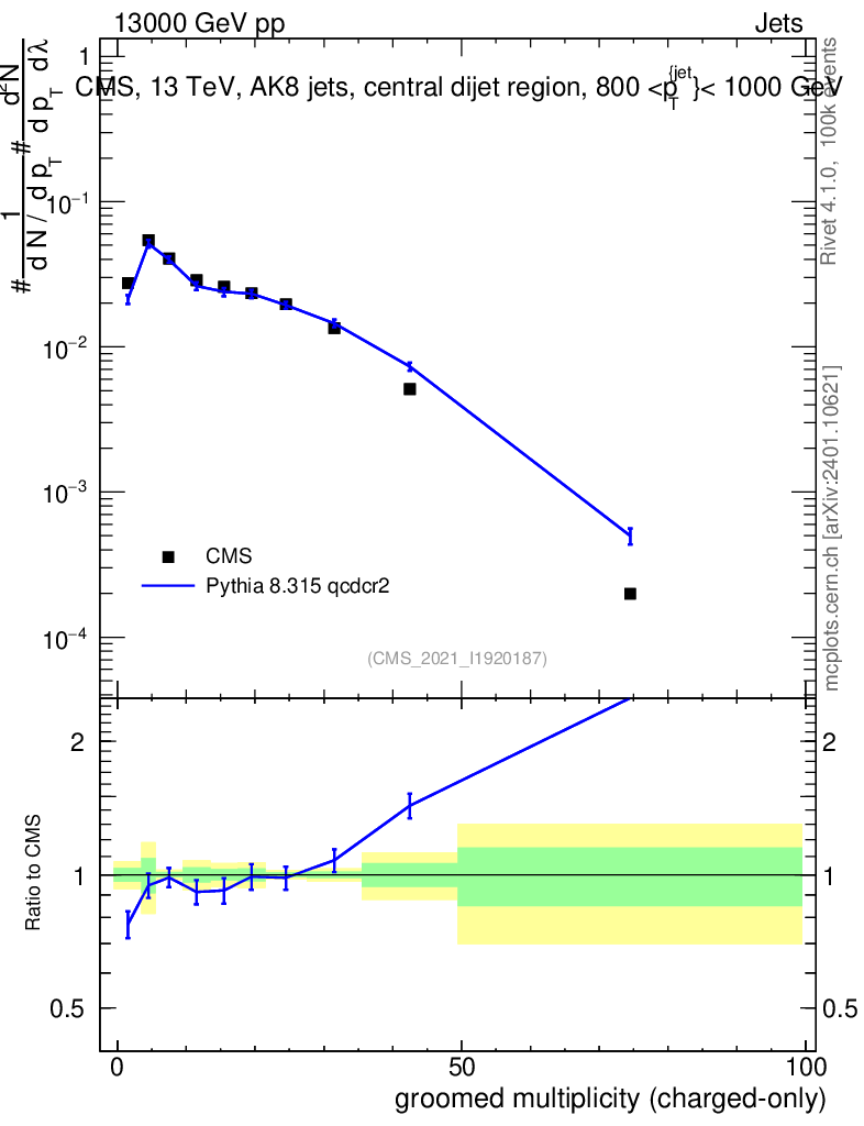 Lines: data, pythia8 8.315 qcdcr2 |