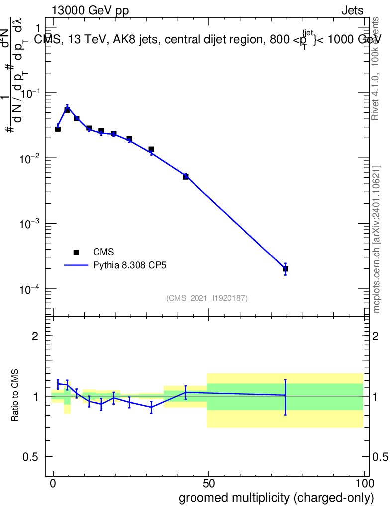 Lines: data, pythia8 8.308 CP5 |
