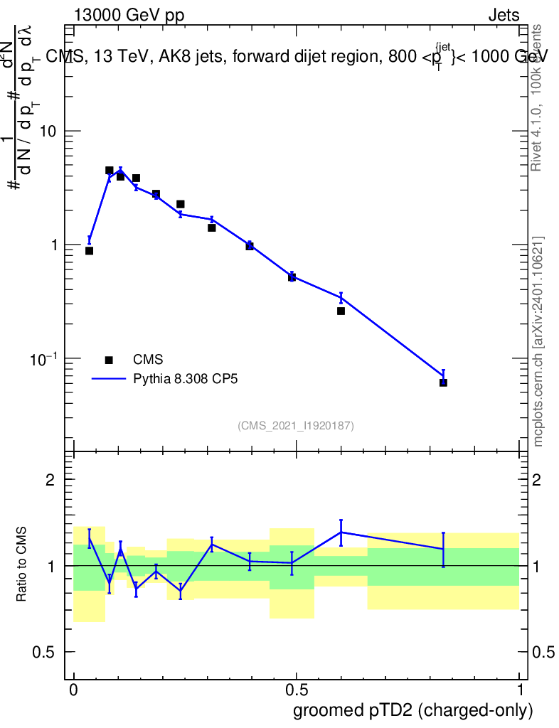 Lines: data, pythia8 8.308 CP5 |