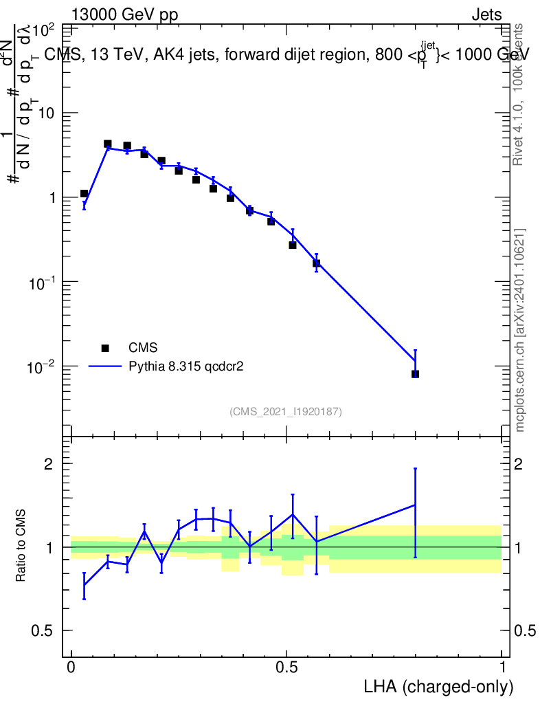 Lines: data, pythia8 8.315 qcdcr2 |