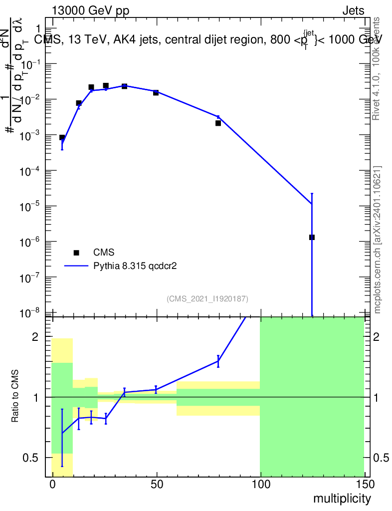 Lines: data, pythia8 8.315 qcdcr2 |