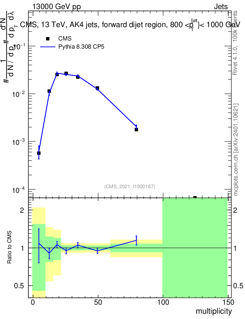 Lines: data, pythia8 8.308 CP5 |