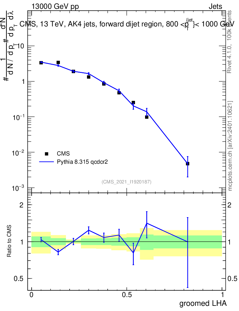 Lines: data, pythia8 8.315 qcdcr2 |