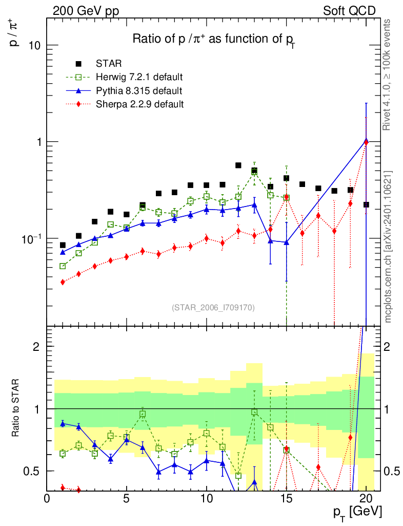 Soft QCD (inelastic) : Identified Particles : Ratios : p/π+ vs pT