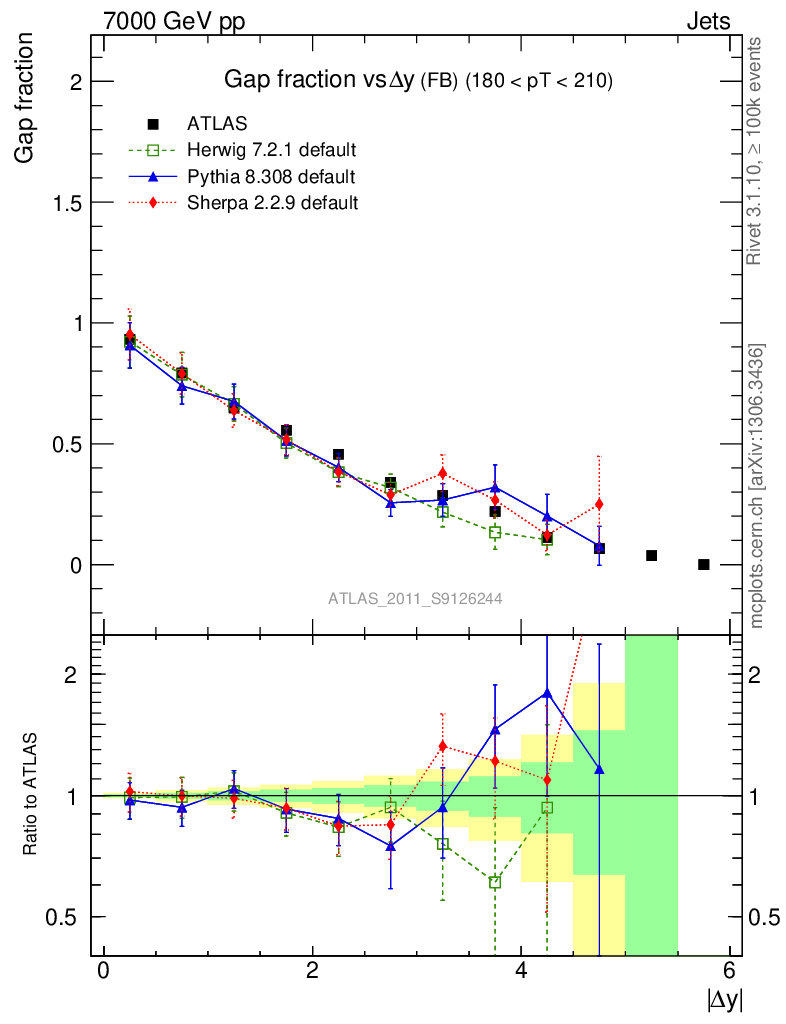 Jets : Jets + Veto : Gap fraction vs Δy (FB)