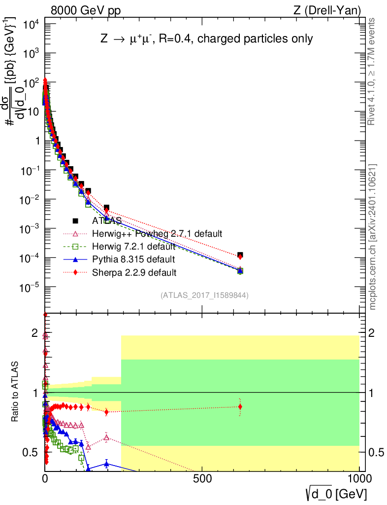 Plot of d0 in 8000 GeV pp collisions