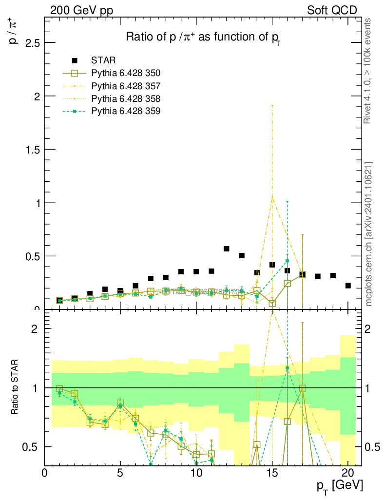 Soft QCD (inelastic) : Identified Particles : Ratios : p/π+ vs pT