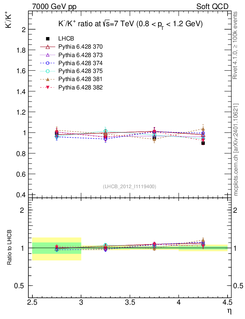 Soft QCD (inelastic) : Identified Particles : Ratios : K-/K+ vs |y|
