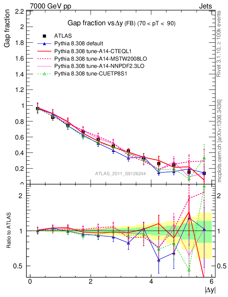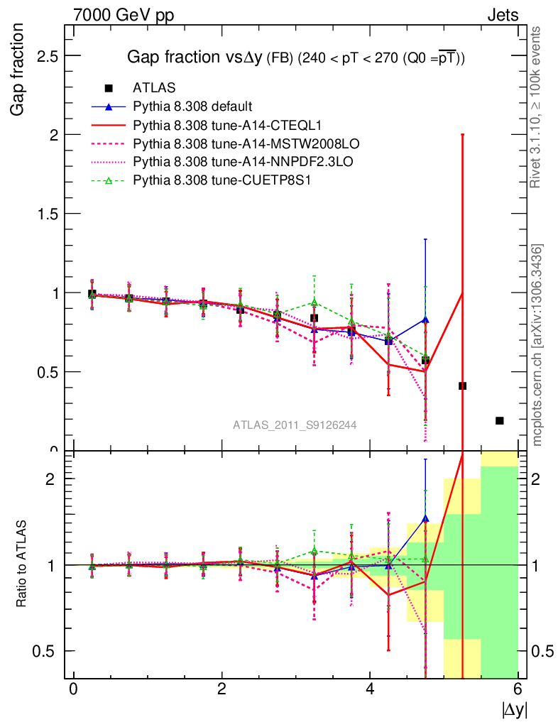 Jets : Jets + Veto : Gap fraction vs Δy (FB)