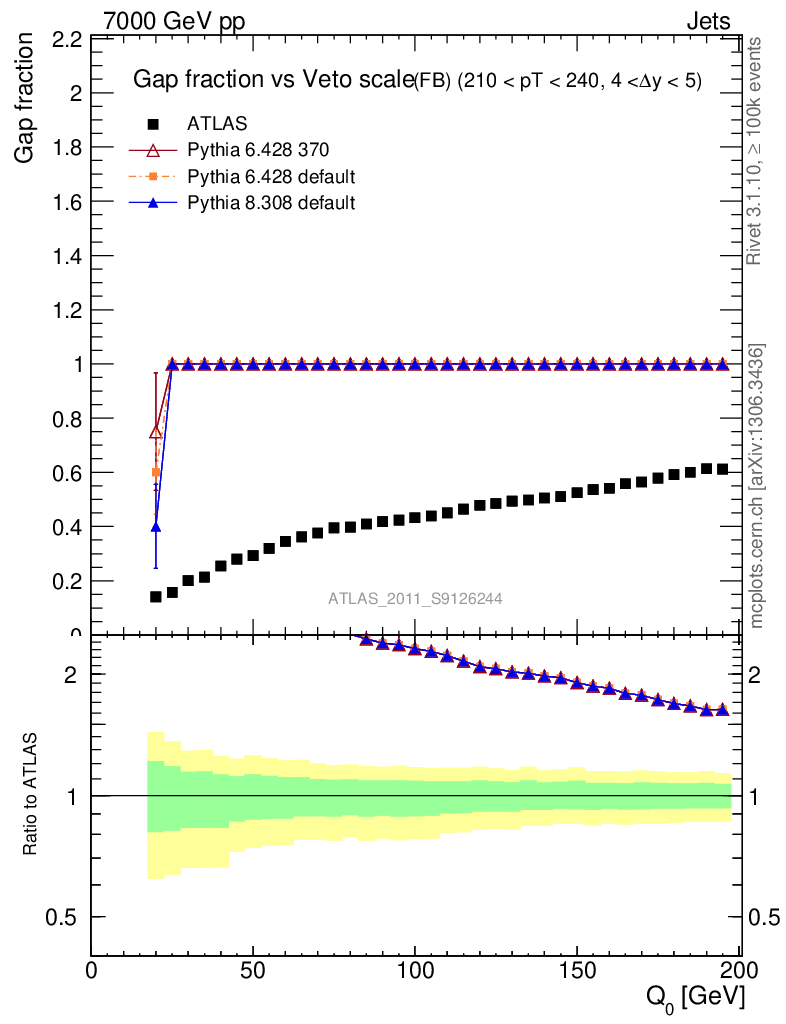 Jets : Jets + Veto : Gap frac. vs Veto scale (FB)