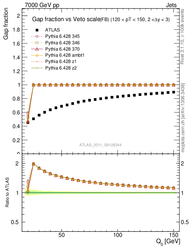 Jets : Jets + Veto : Gap frac. vs Veto scale (FB)
