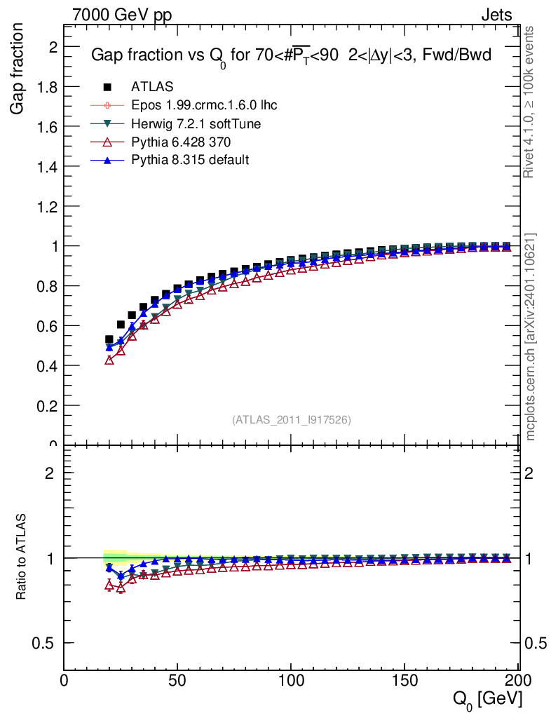 Jets : Jets + Veto : Gap frac. vs Veto scale (FB)