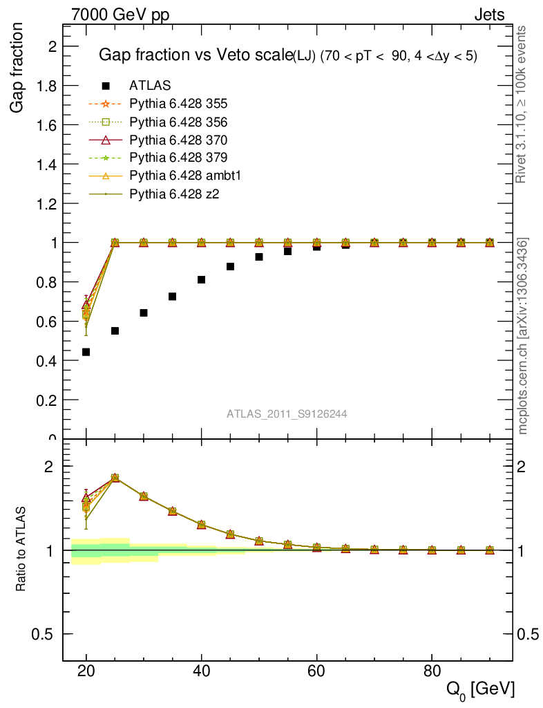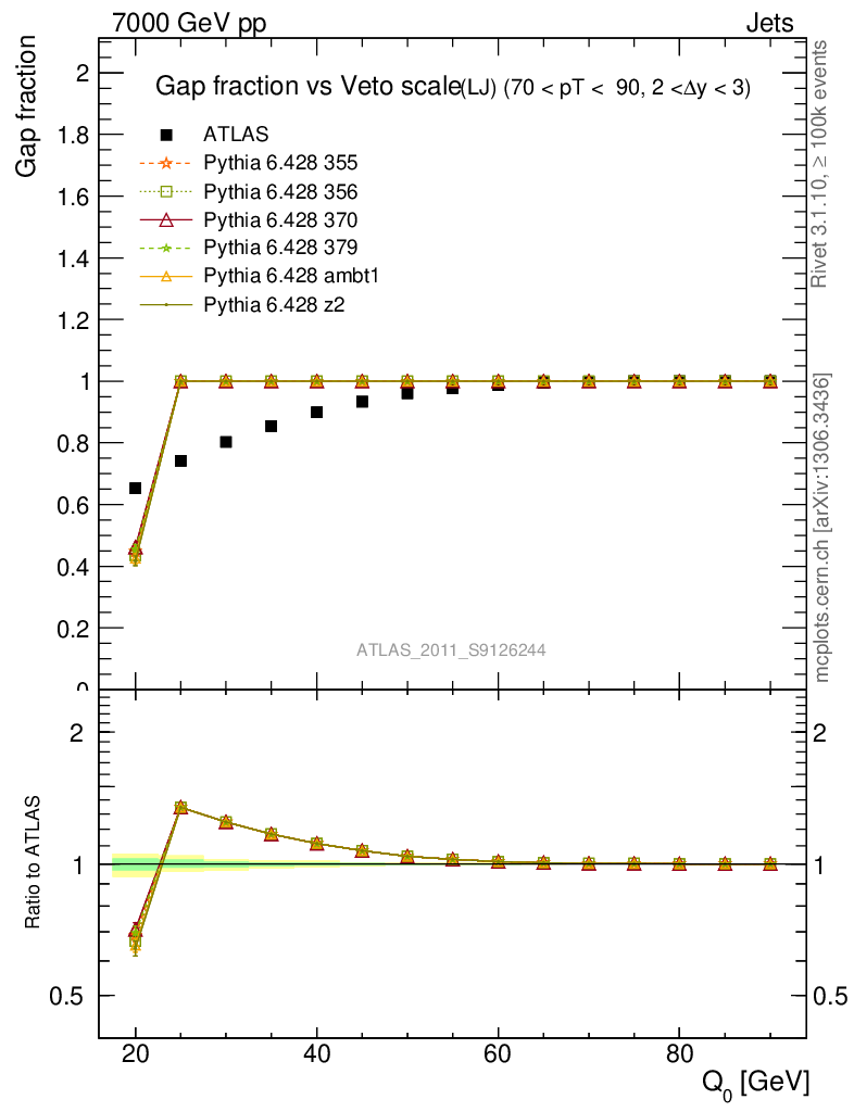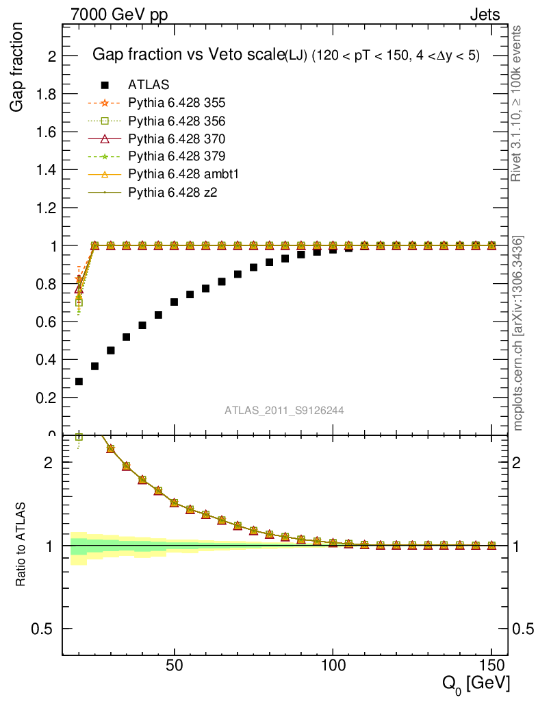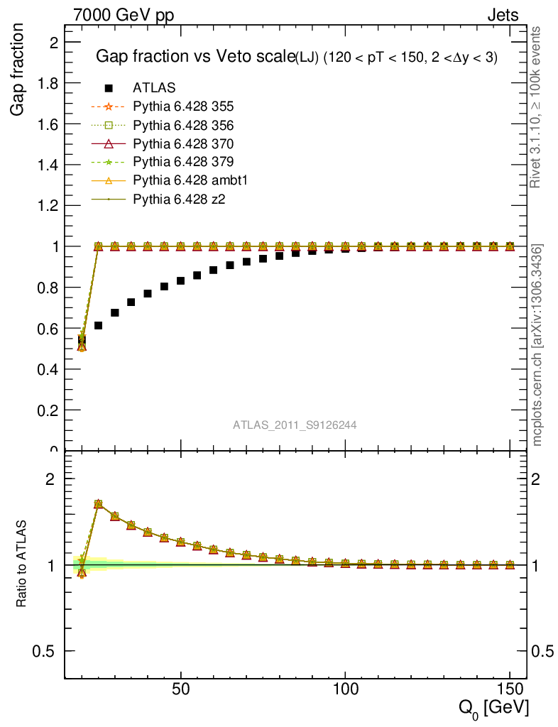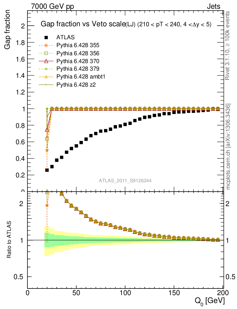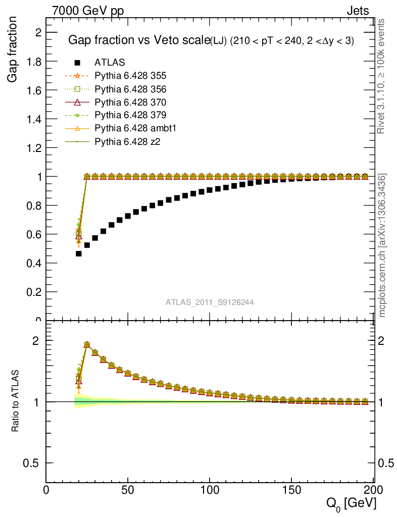 Jets : Jets + Veto : Gap frac. vs Veto scale (LJ)