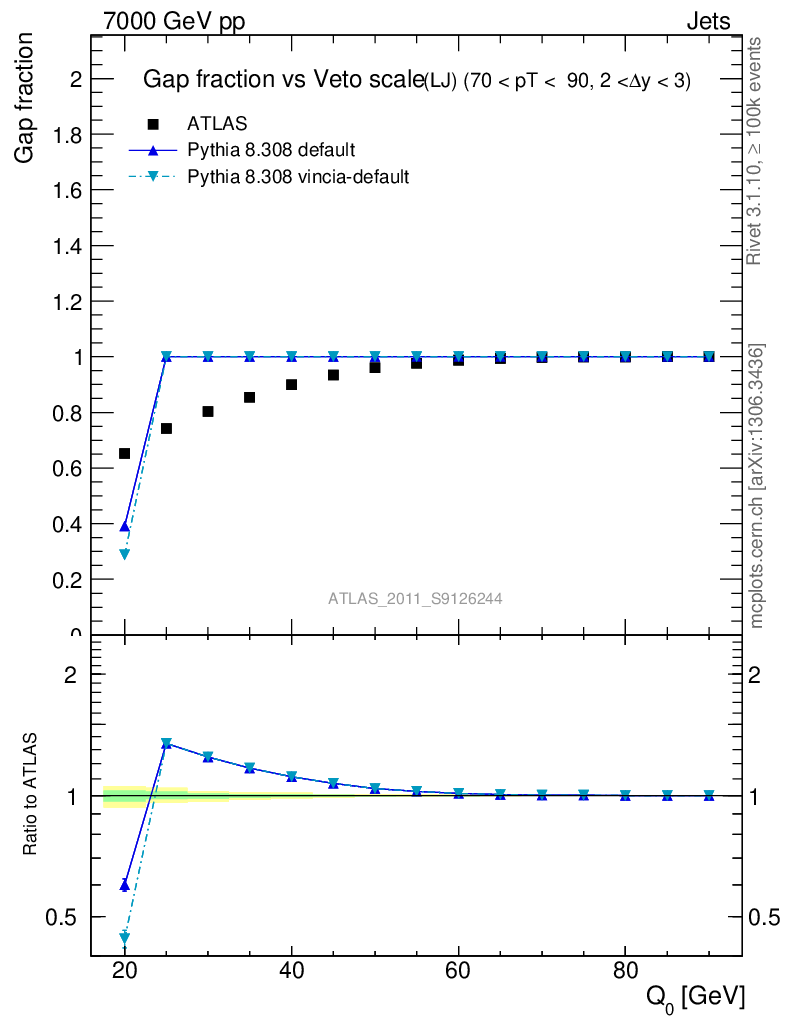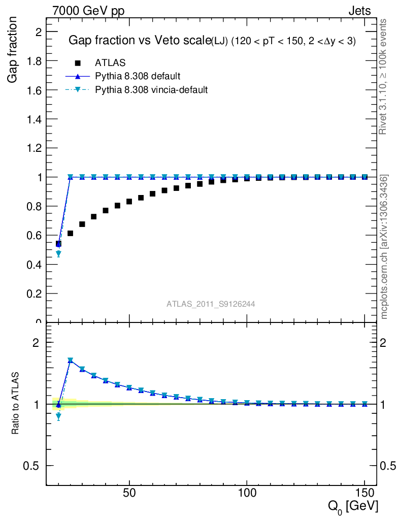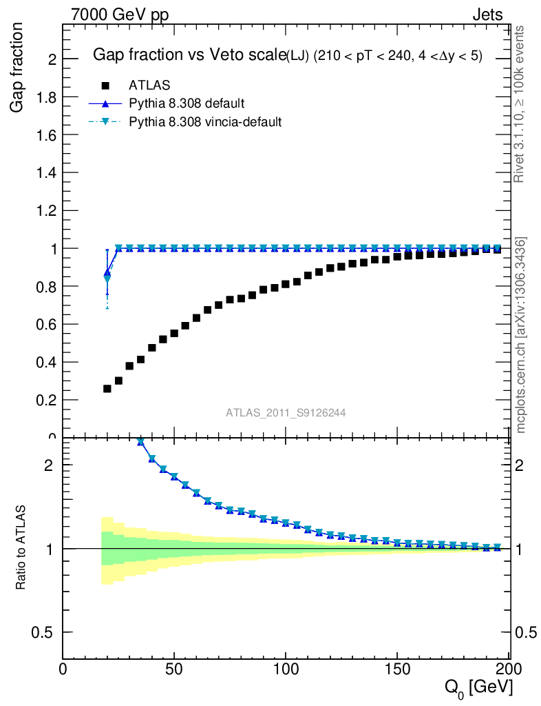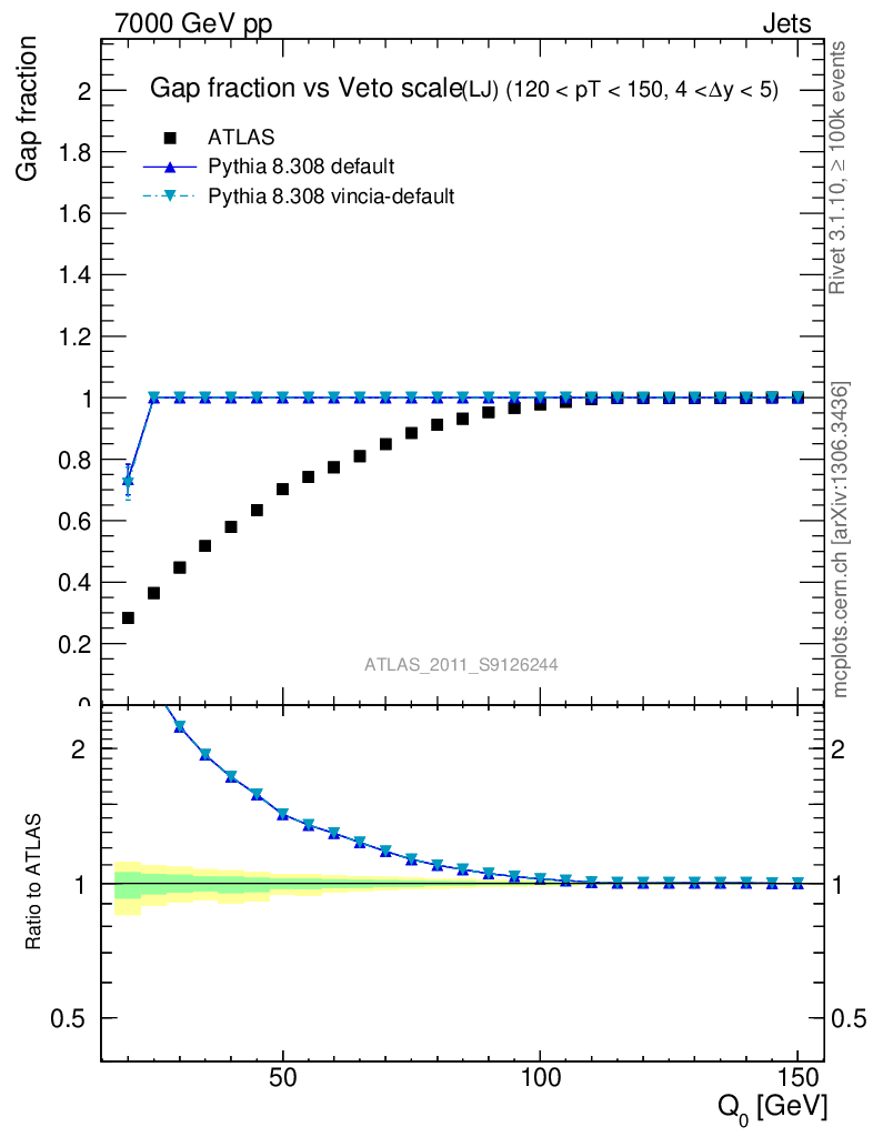 Jets : Jets + Veto : Gap frac. vs Veto scale (LJ)