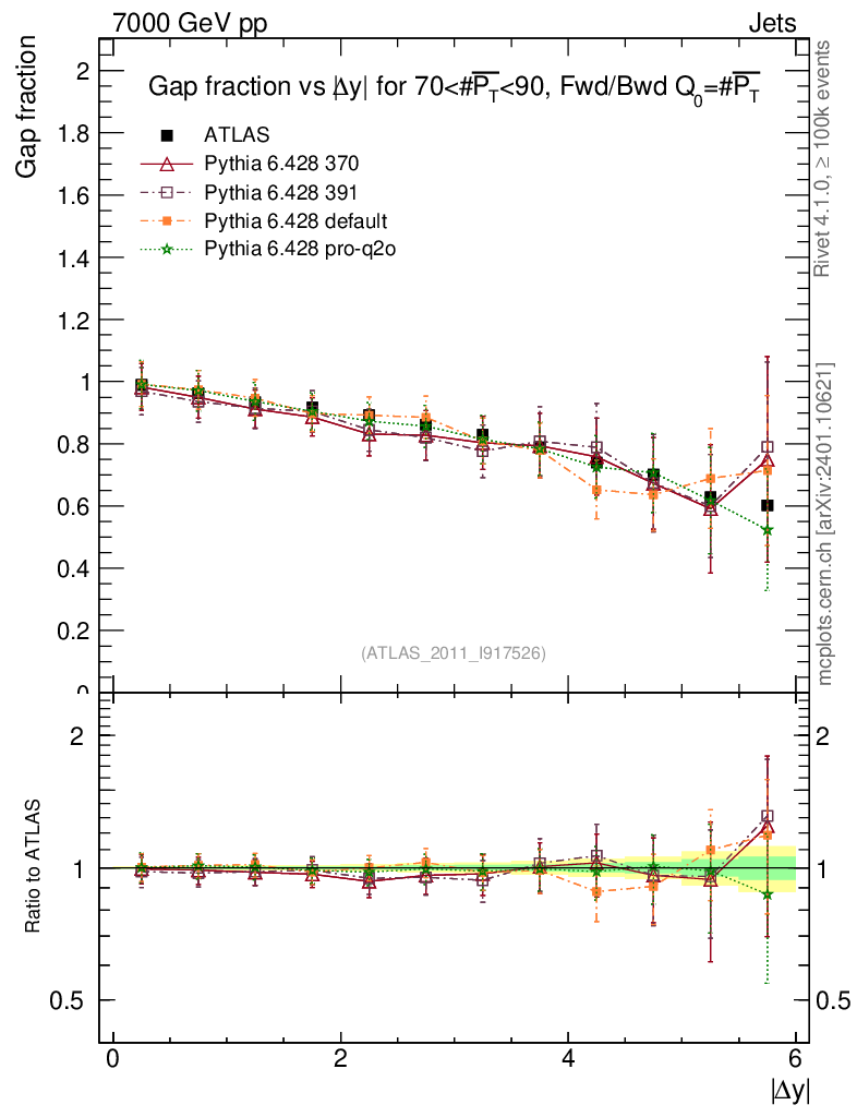 Jets : Jets + Veto : Gap fraction vs Δy (FB)