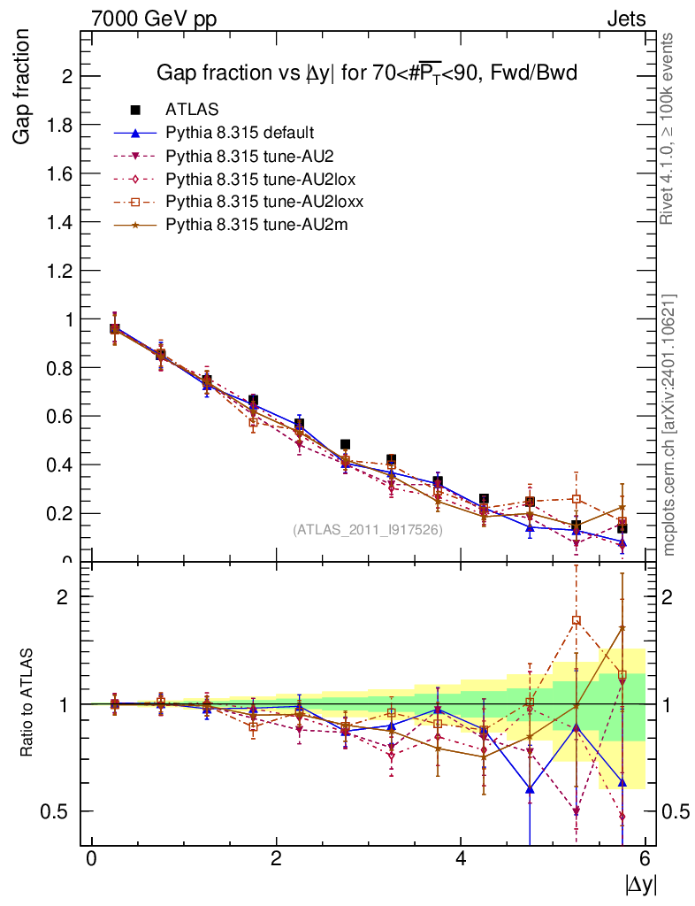 Gap fraction vs Δy (FB)