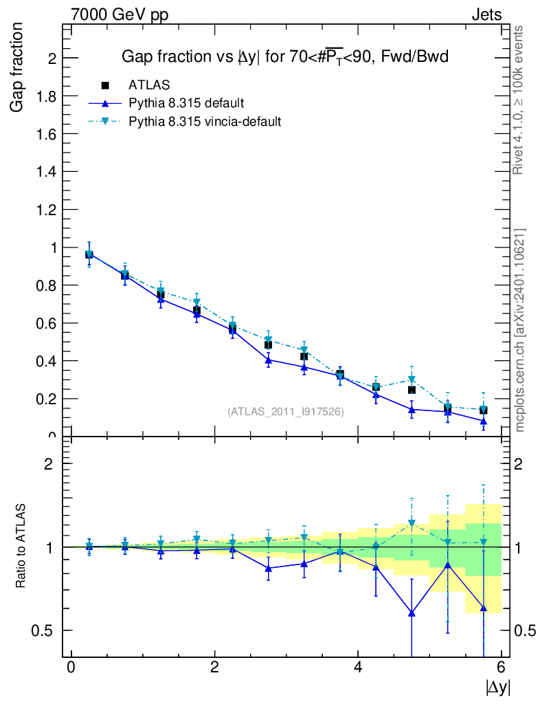 Gap fraction vs Δy (FB)