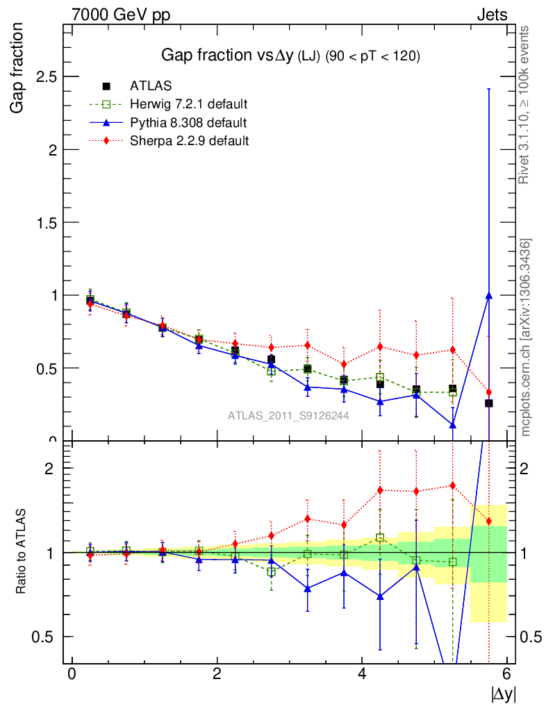 Jets : Jets + Veto : Gap fraction vs Δy (LJ)