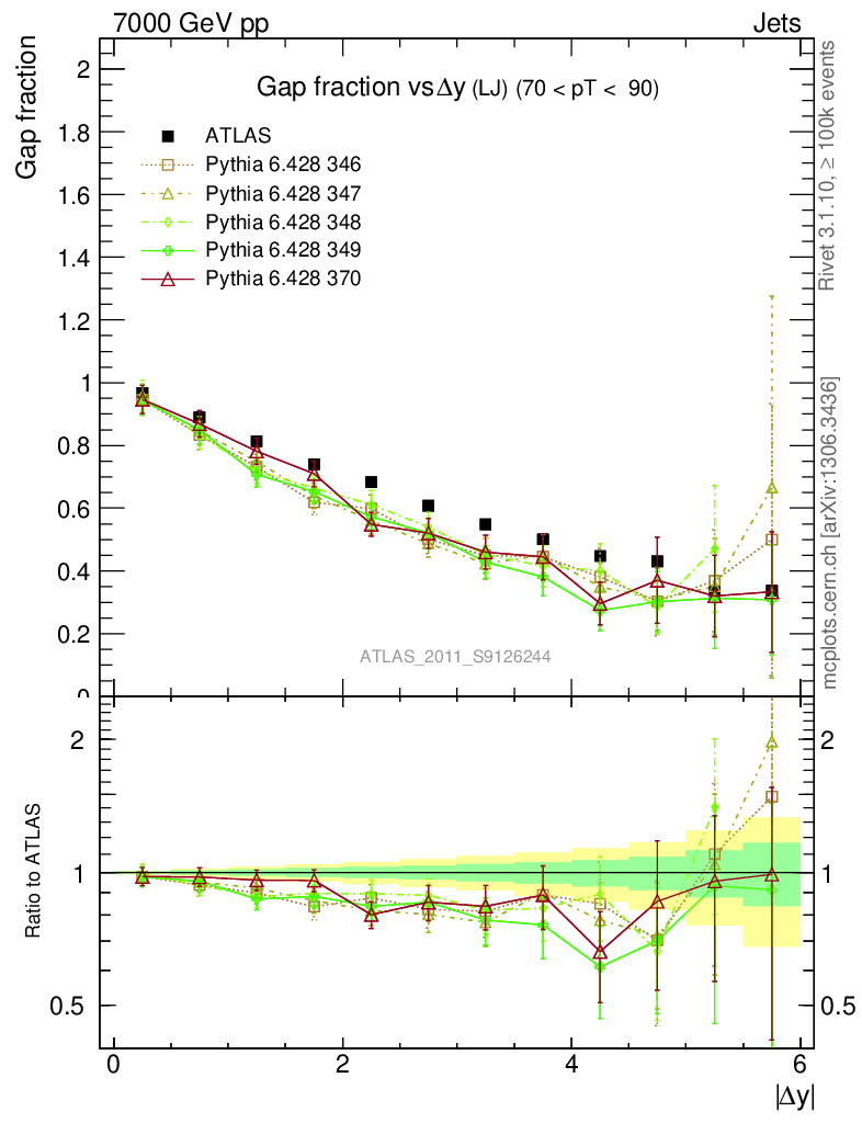 Jets : Jets + Veto : Gap fraction vs Δy (LJ)