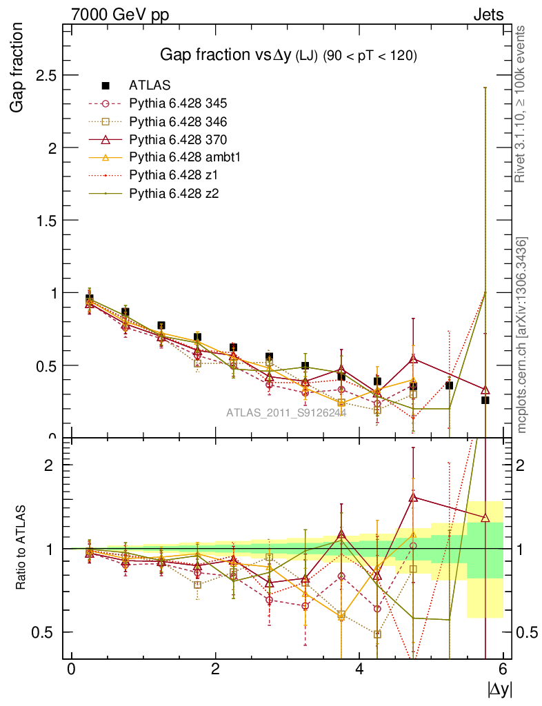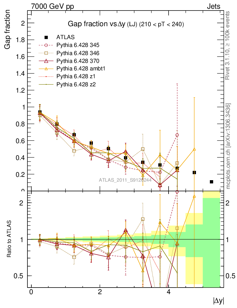 Jets : Jets + Veto : Gap fraction vs Δy (LJ)