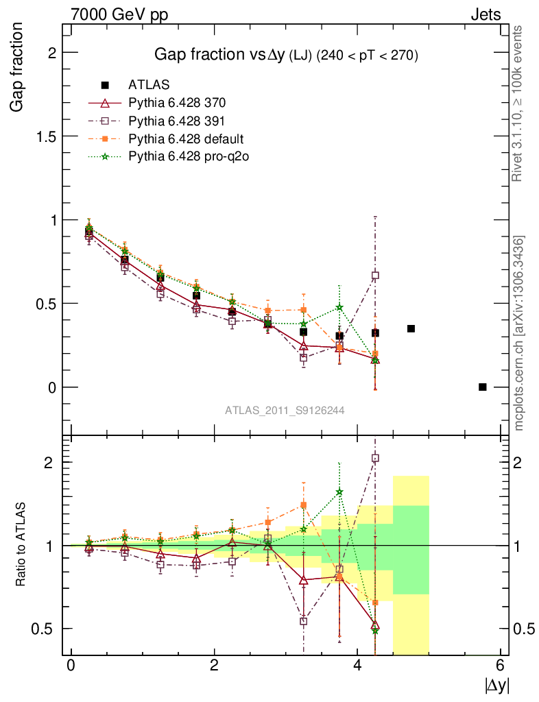 Jets : Jets + Veto : Gap fraction vs Δy (LJ)
