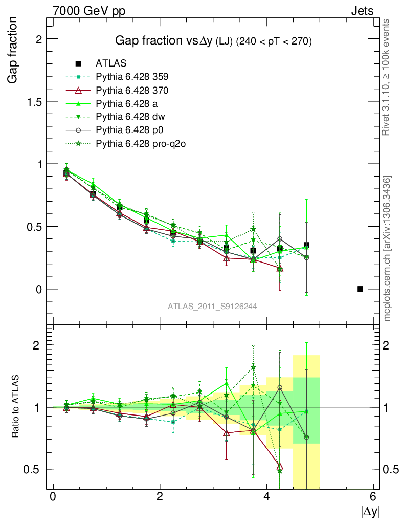Jets : Jets + Veto : Gap fraction vs Δy (LJ)