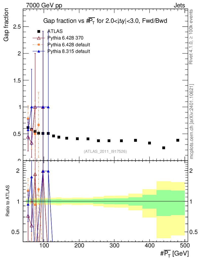 Jets : Jets + Veto : Gap fraction vs pT (FB)