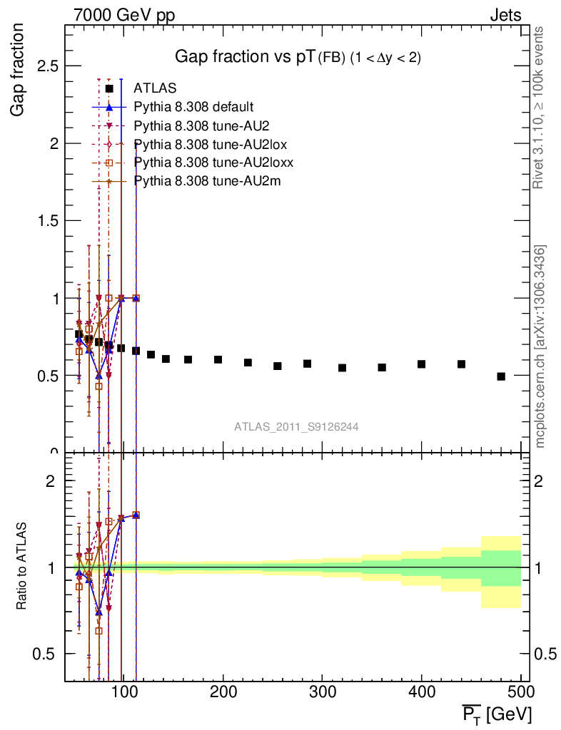 Gap fraction vs pT (FB)