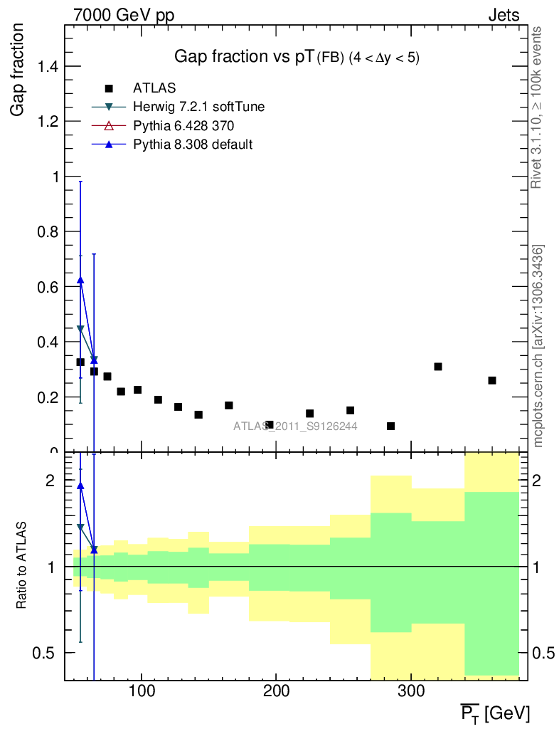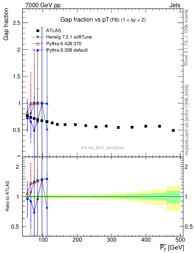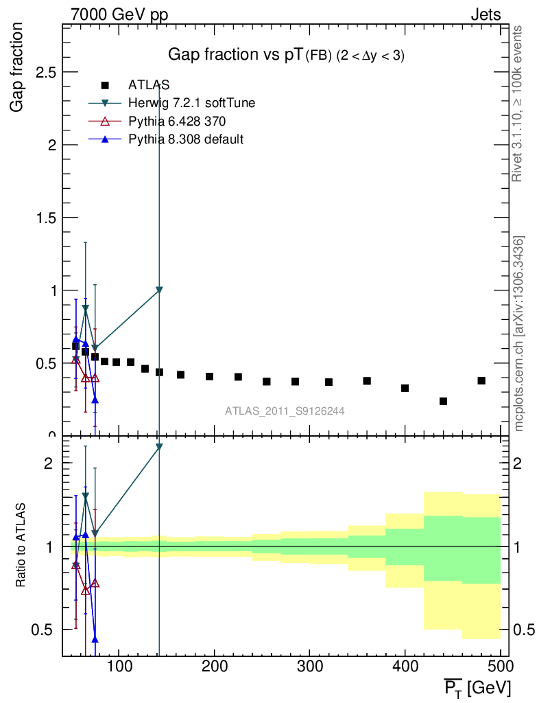 Jets : Jets + Veto : Gap fraction vs pT (FB)