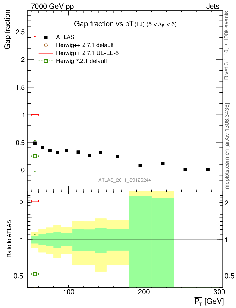 Jets : Jets + Veto : Gap fraction vs pT (LJ)