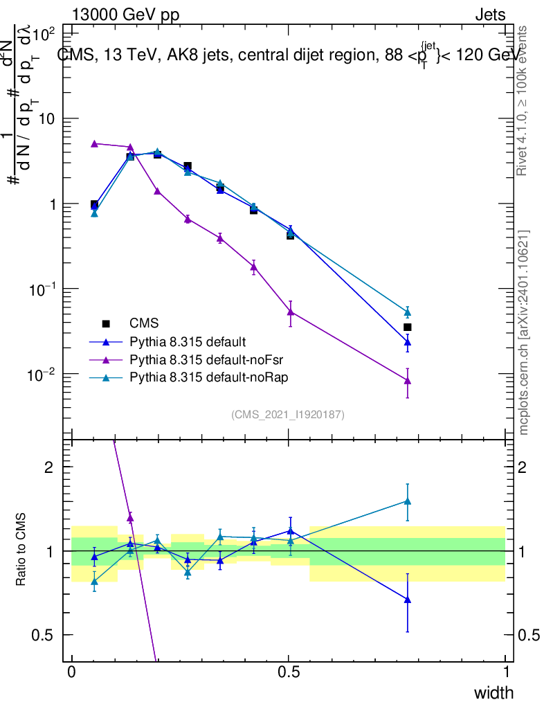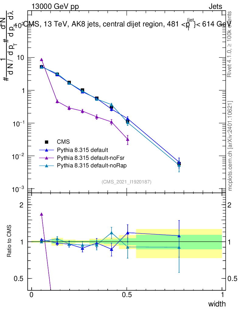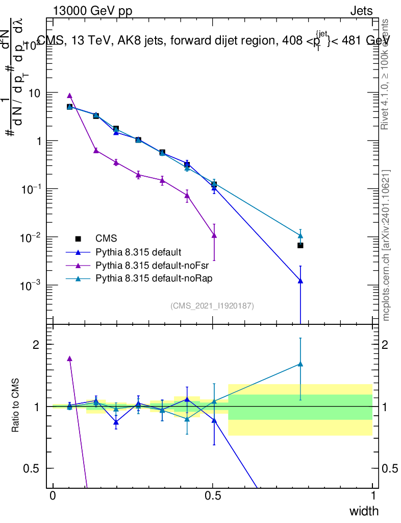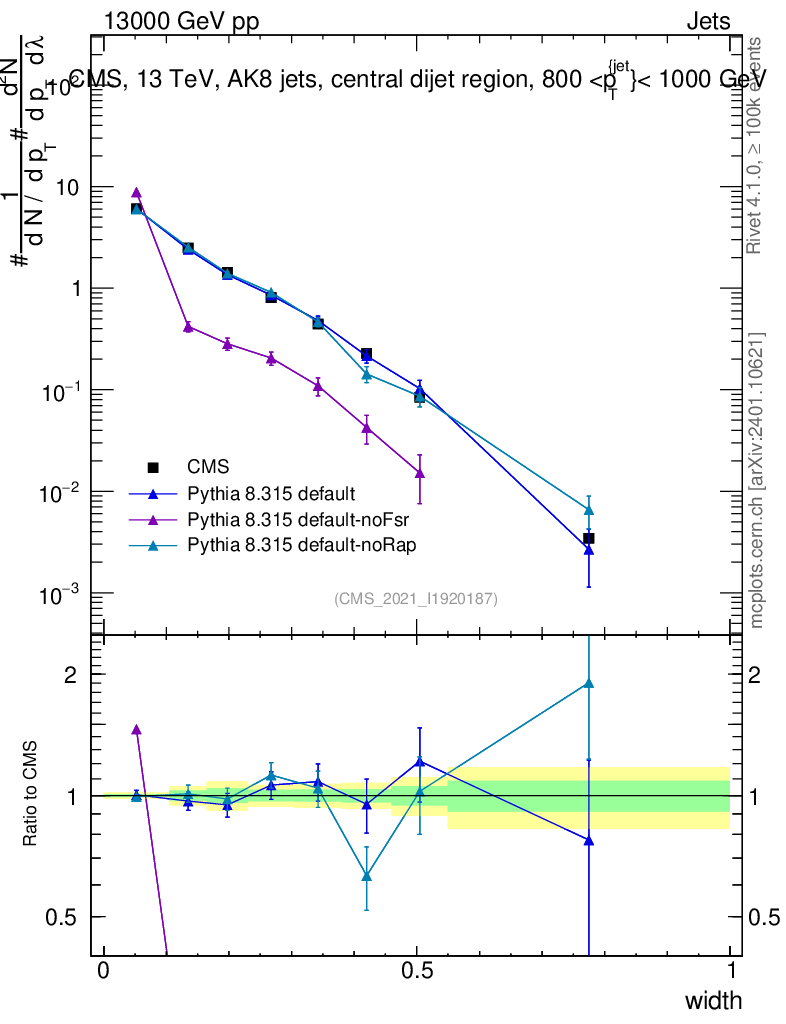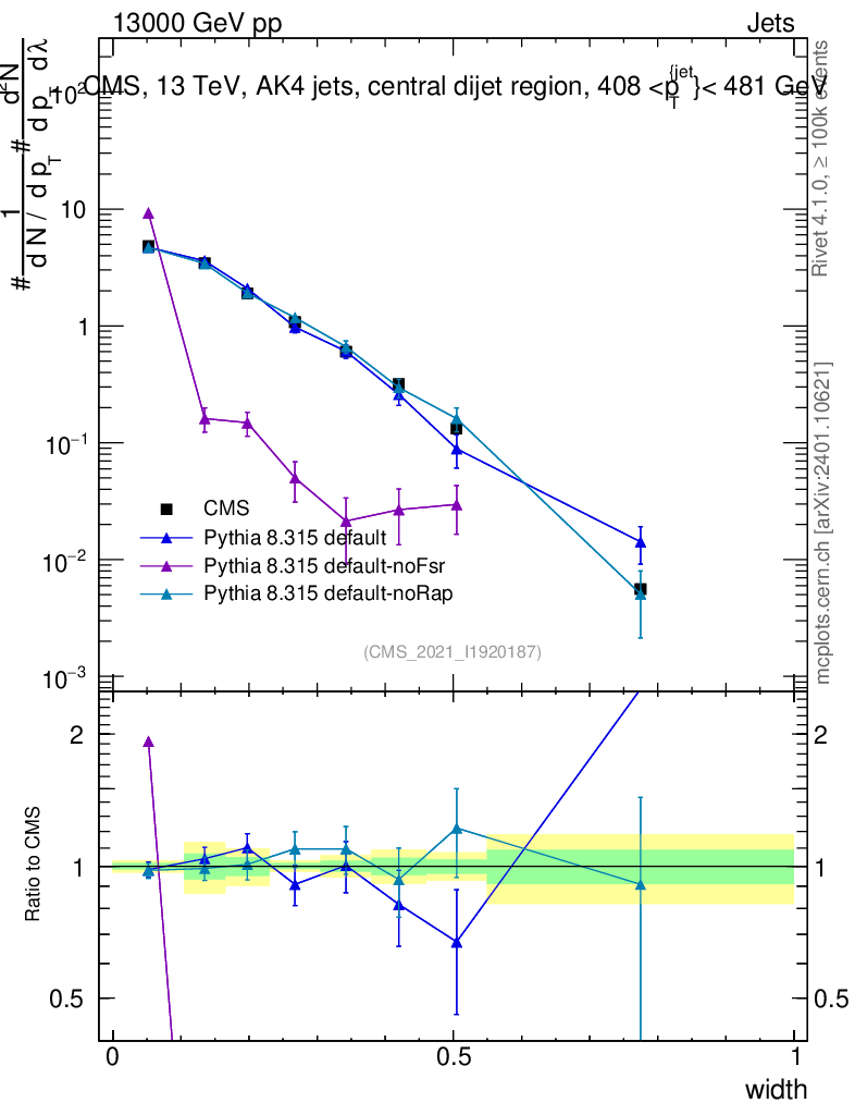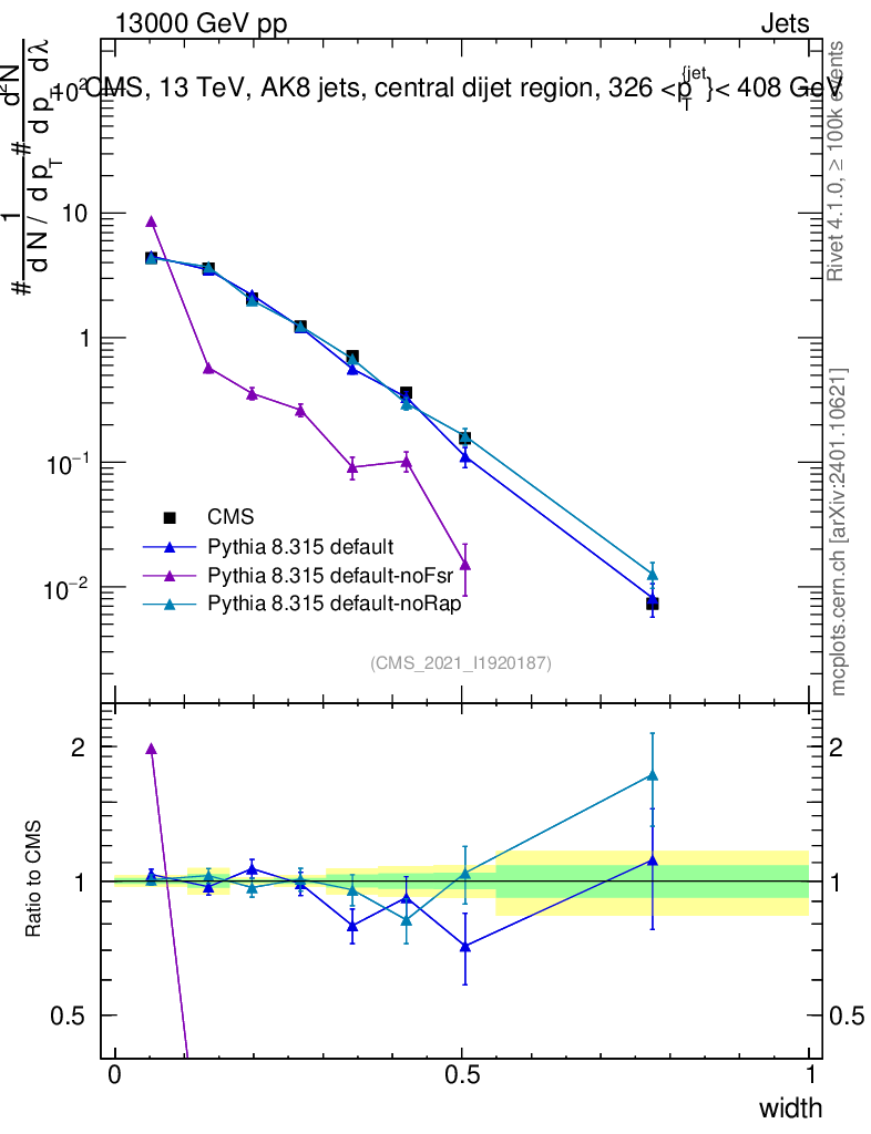 Plot of j.width in 13000 GeV pp collisions