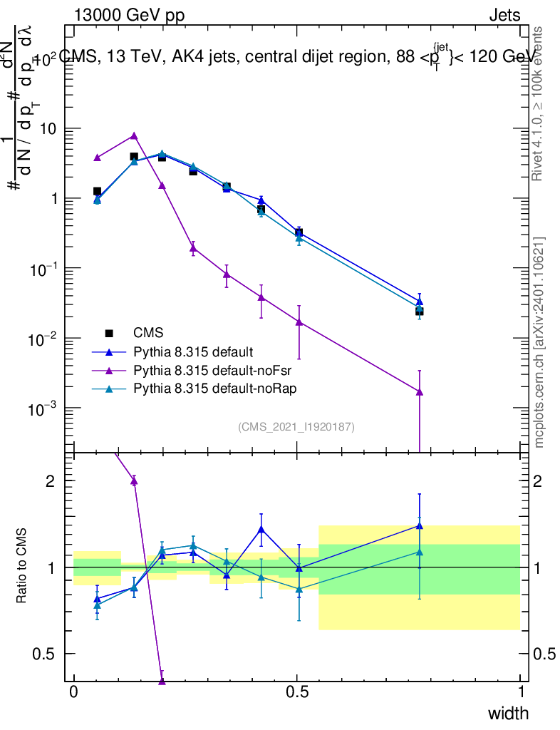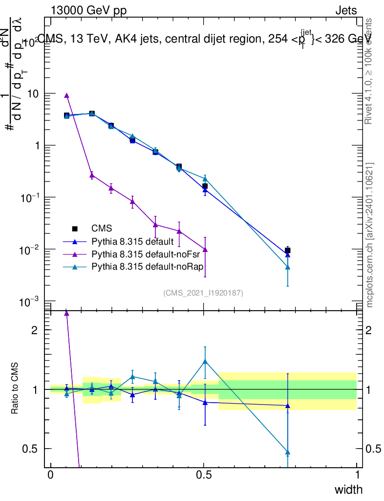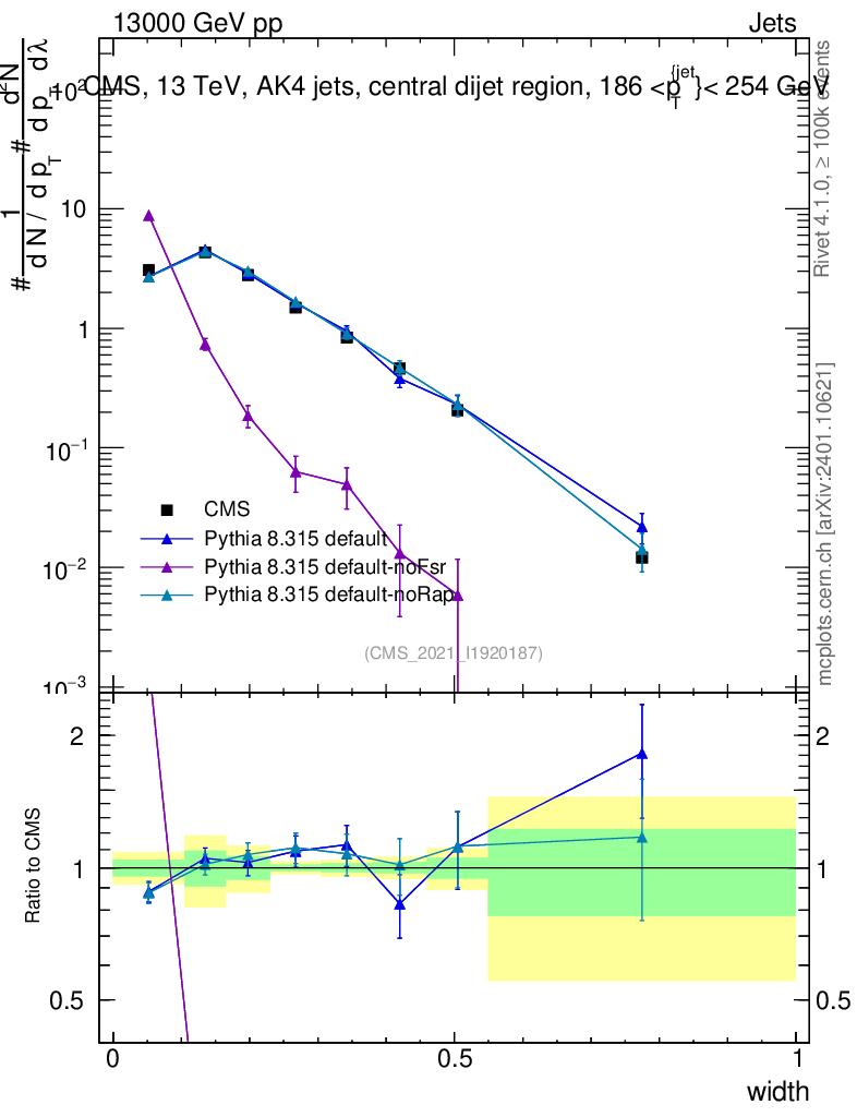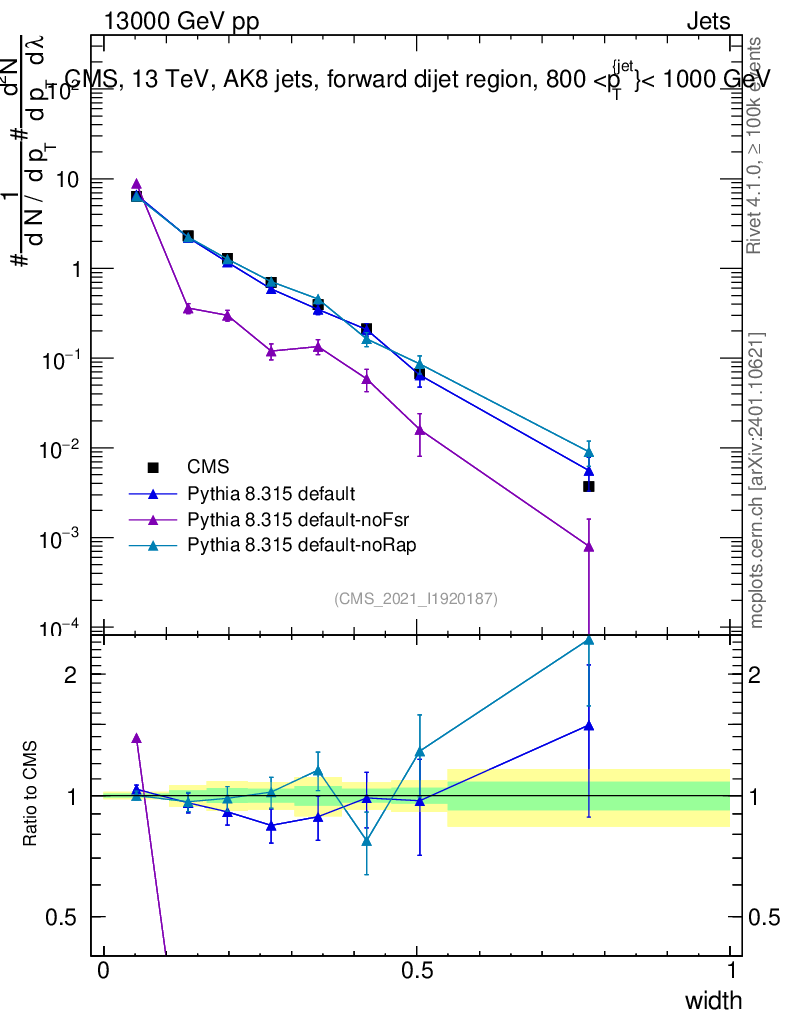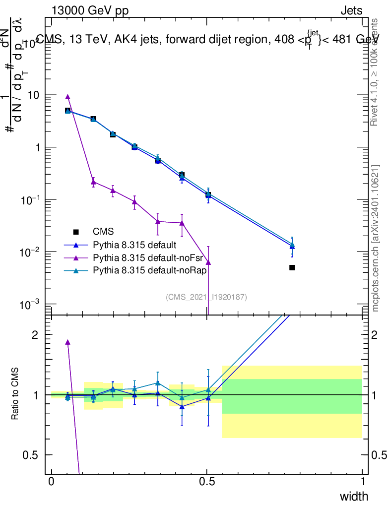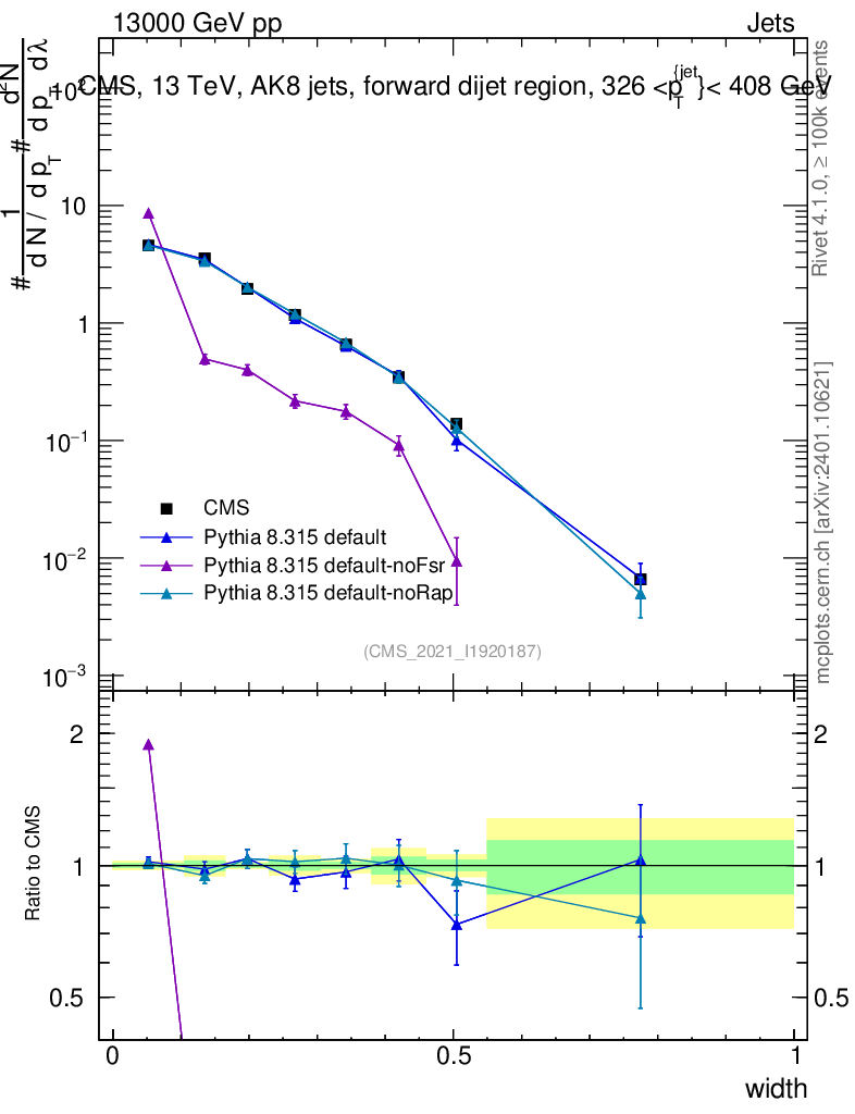 Plot of j.width in 13000 GeV pp collisions
