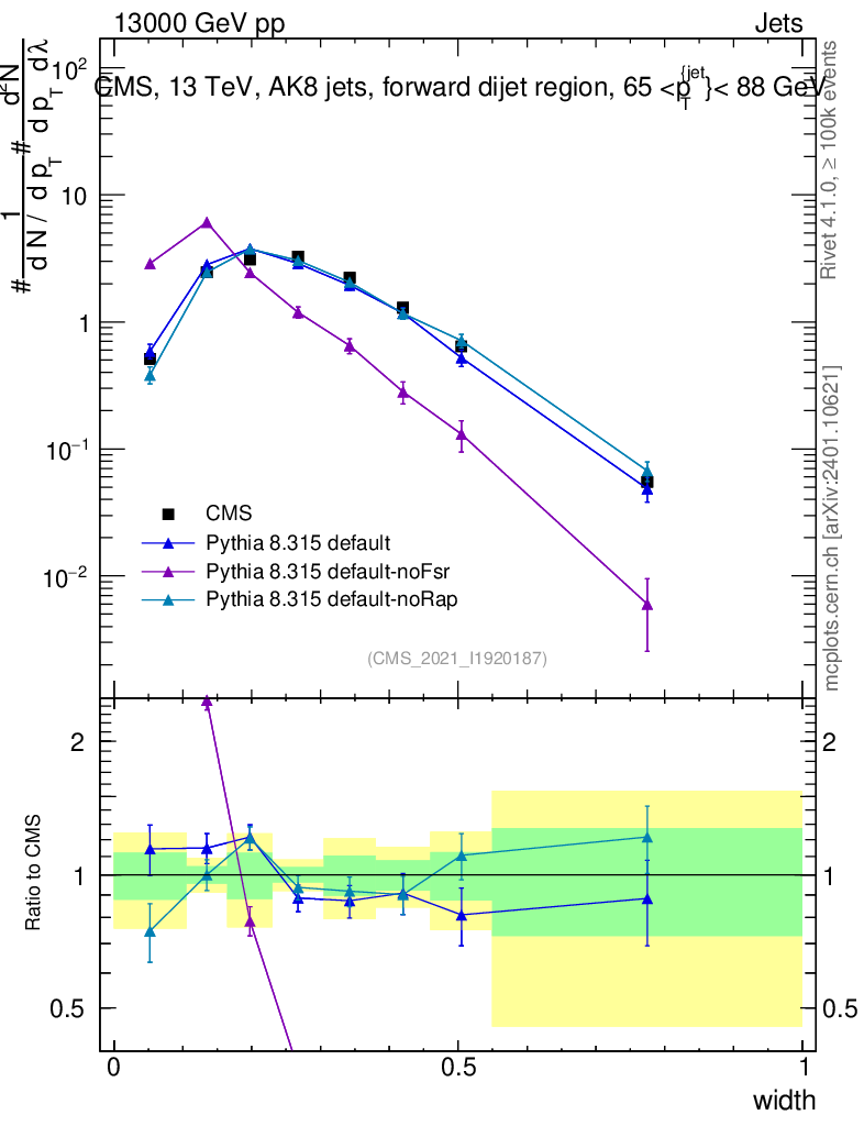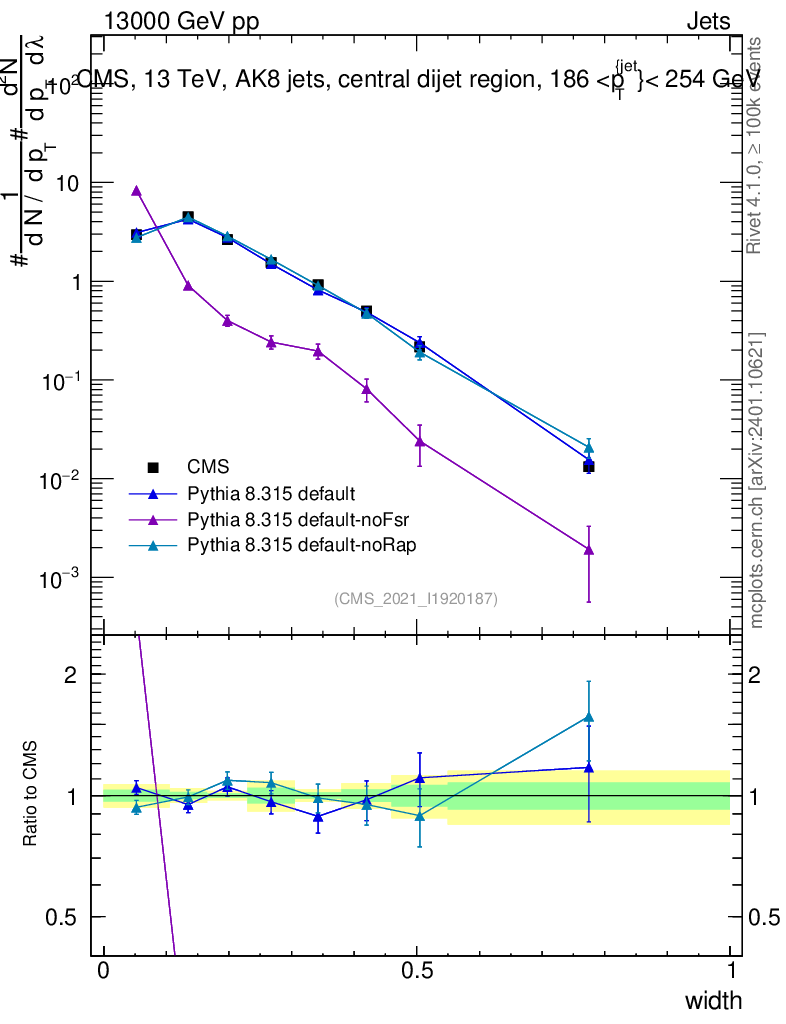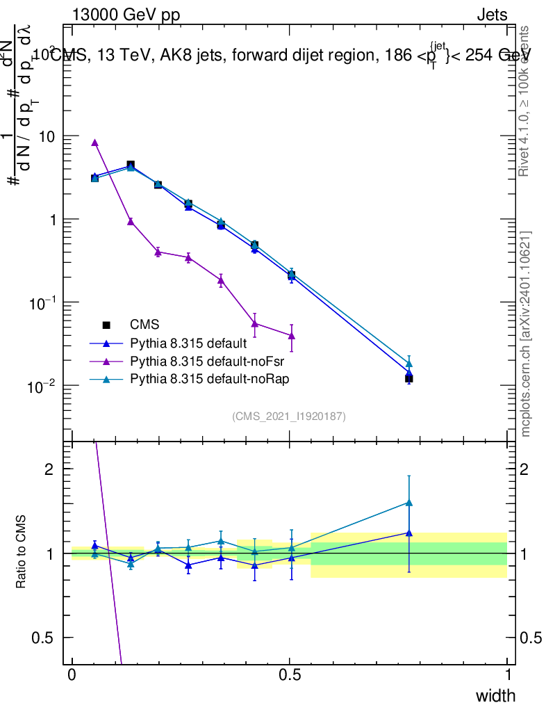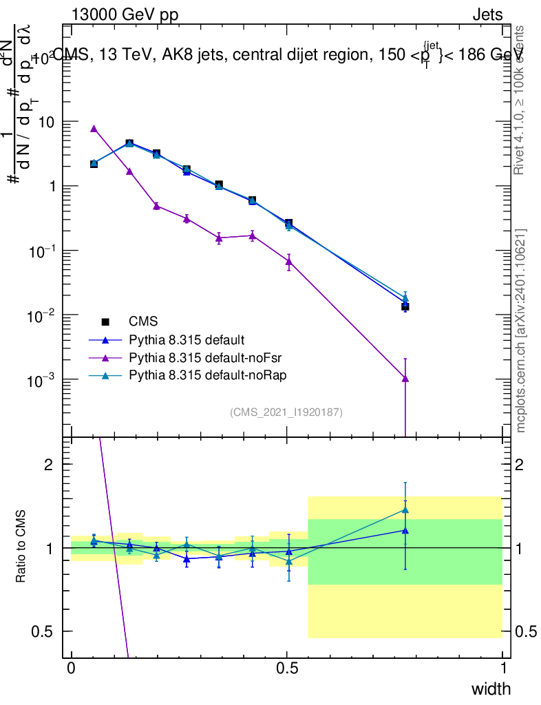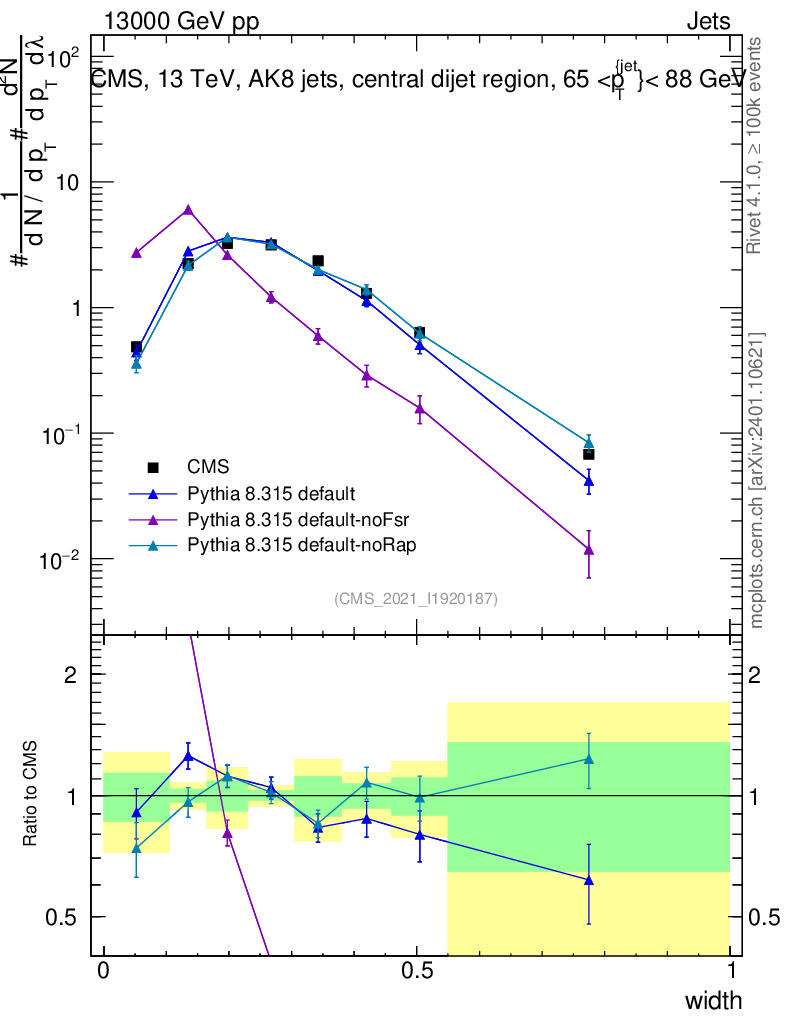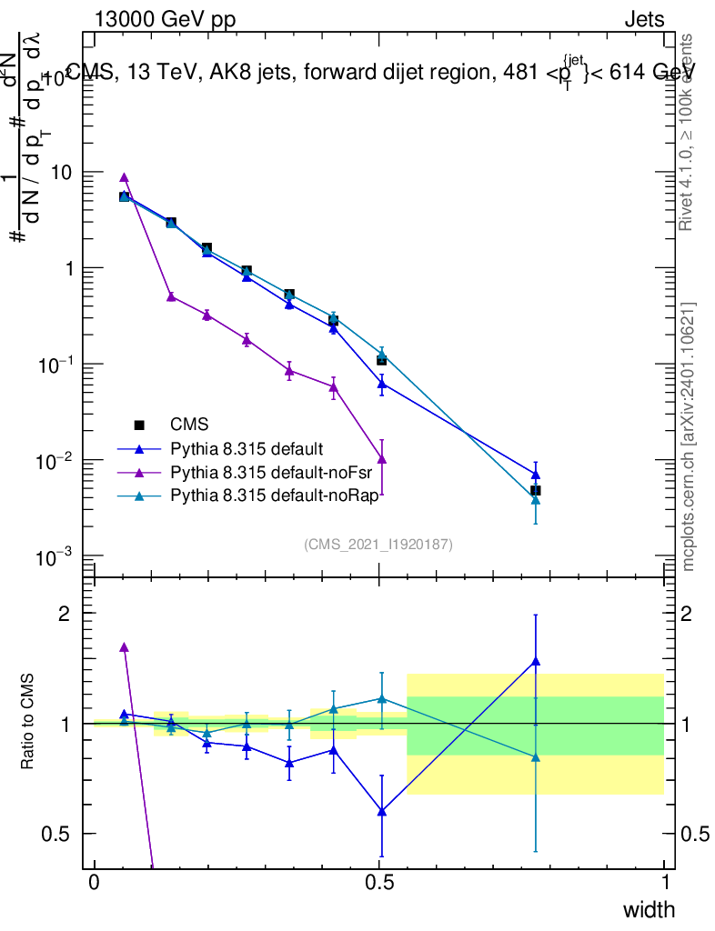 Plot of j.width in 13000 GeV pp collisions