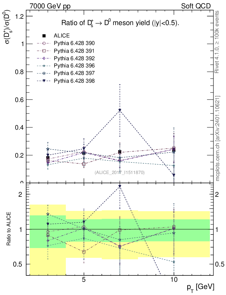 Soft QCD (inelastic) : Identified Particles : Ratios : Ds+/D0 vs pT