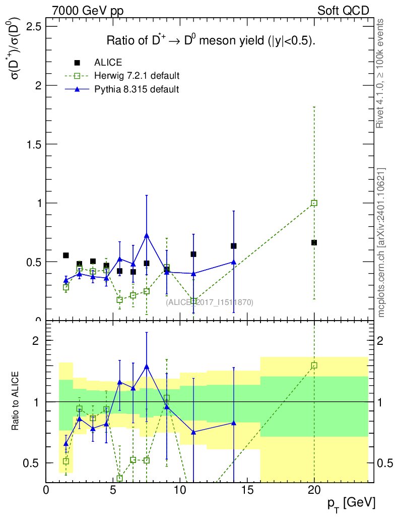 Soft QCD (inelastic) : Identified Particles : Ratios : D*+/D0 vs pT