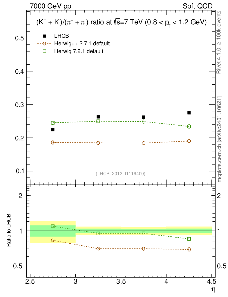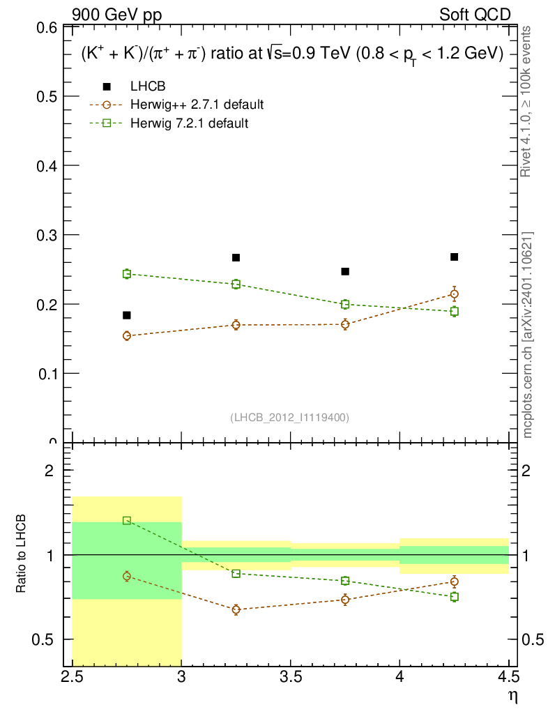 Soft QCD (inelastic) : Identified Particles : Ratios : (K-+K+)/(π-+π+) vs |y|