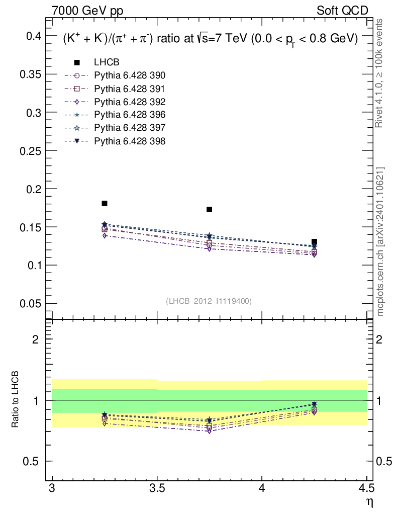 Soft QCD (inelastic) : Identified Particles : Ratios : (K-+K+)/(π-+π+) vs |y|