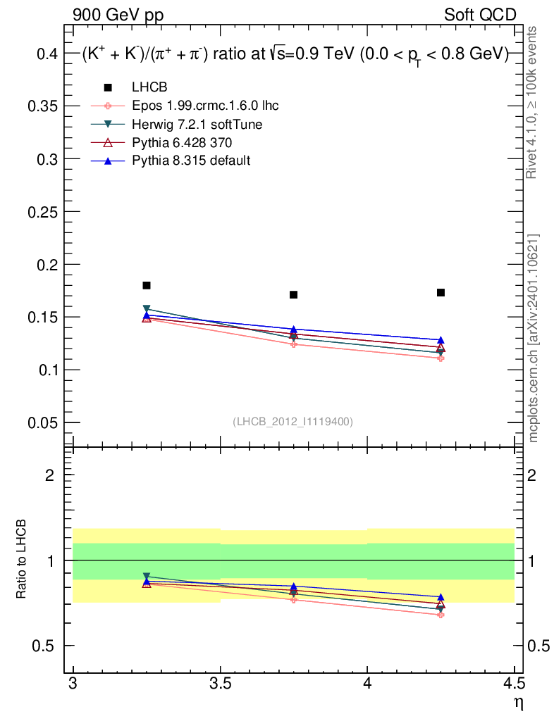 Soft QCD (inelastic) : Identified Particles : Ratios : (K-+K+)/(π-+π+) vs |y|