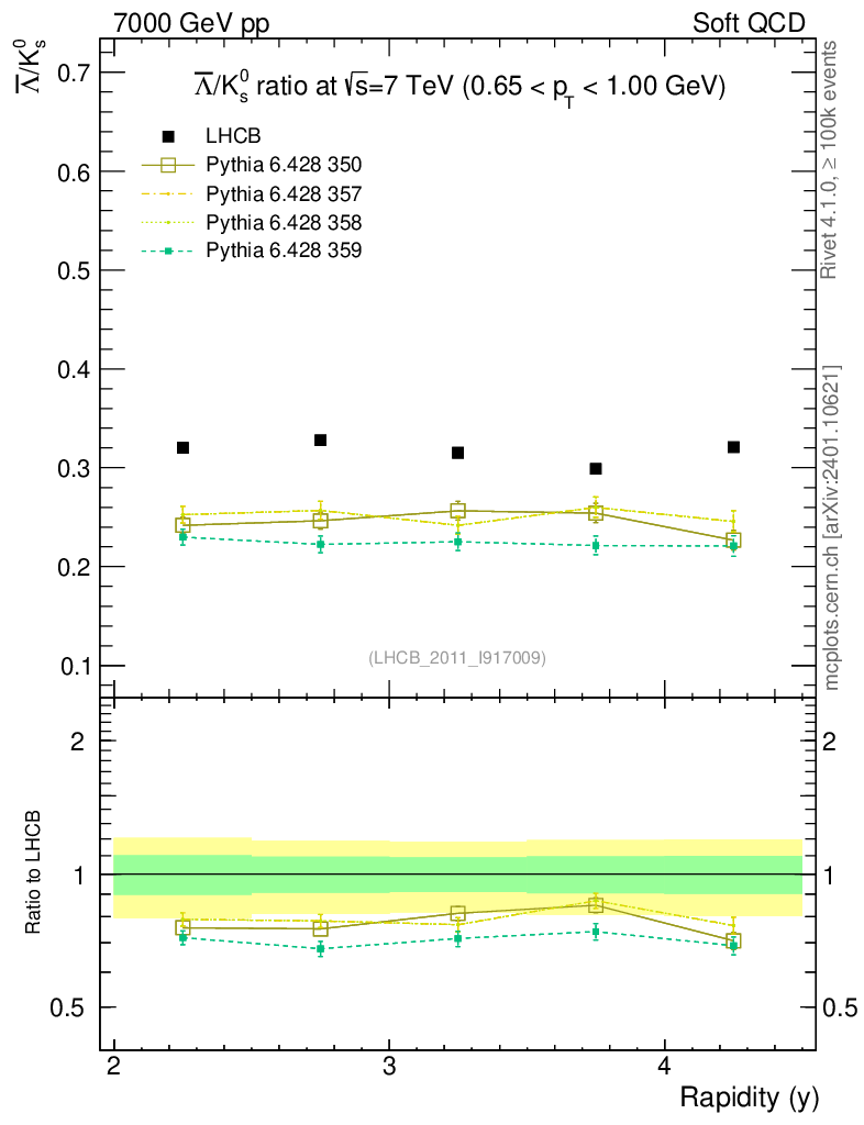 Soft QCD (inelastic) : Identified Particles : Ratios : Λbar/K0S vs |y|