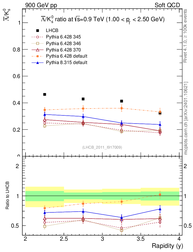 Soft QCD (inelastic) : Identified Particles : Ratios : Λbar/K0S vs |y|