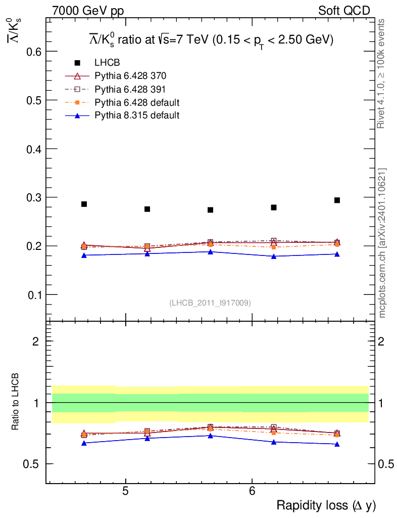 Soft QCD (inelastic) : Identified Particles : Ratios : Λbar/K0S vs |Δy|